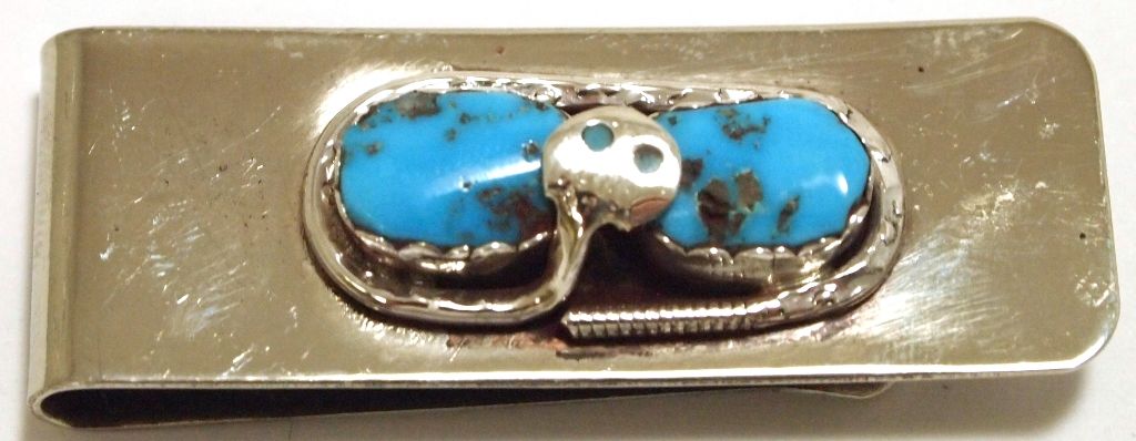Zuni Turquoise Sterling Silver Snake Money Clip - Effie Calavaza