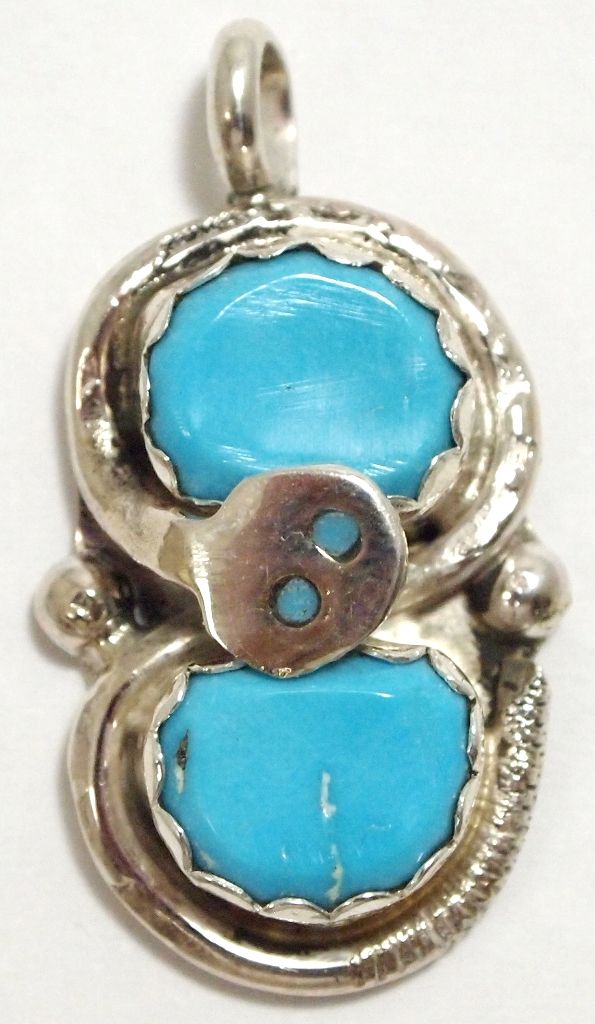 Zuni Turquoise Sterling Silver Snake Pendant - Effie Calavaza