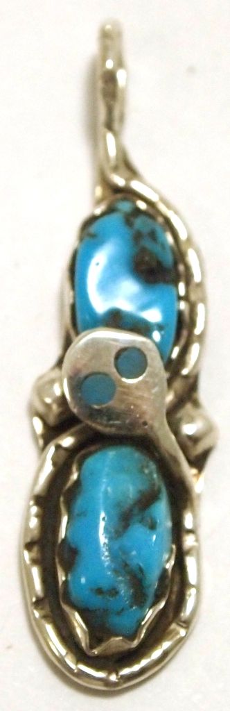 Zuni Turquoise Sterling Silver Snake Pendant - Effie Calavaza