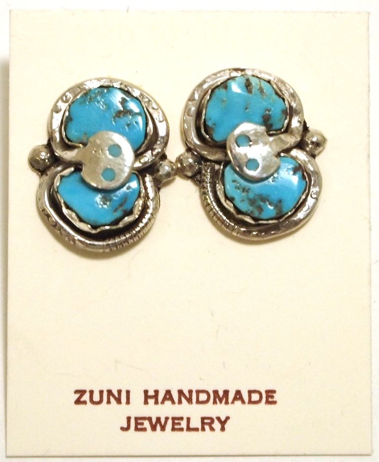 Zuni Turquoise Sterling Silver Snake Post Earrings - Effie Calavaza