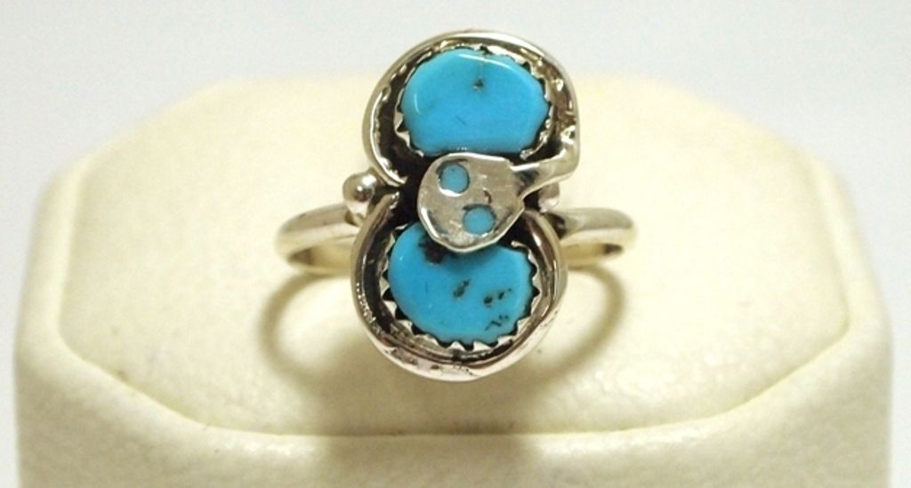 Zuni Turquoise Sterling Silver Snake Women's Ring - Effie Calavaza