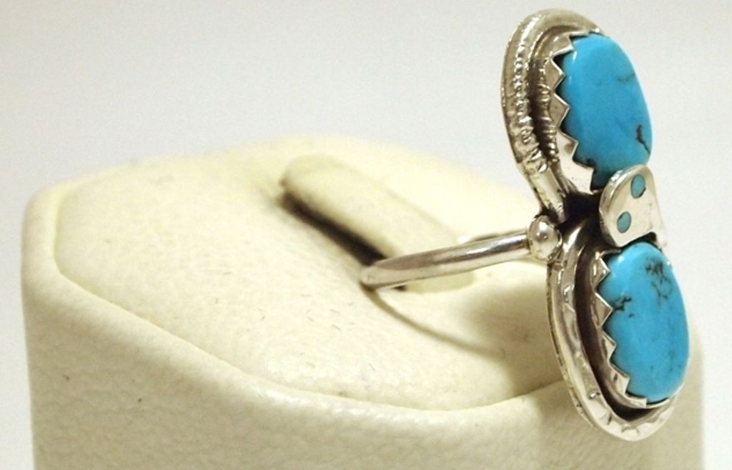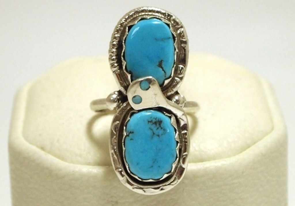 Zuni Turquoise Sterling Silver Snake Women's Ring - Effie Calavaza