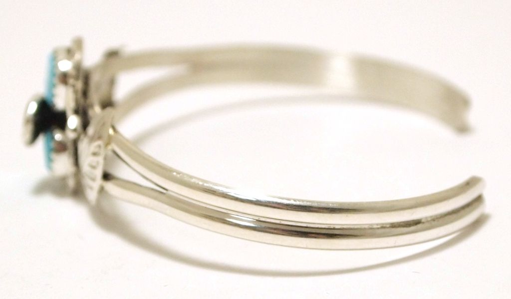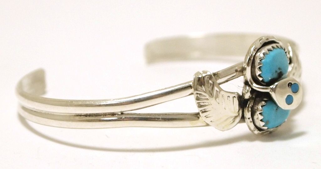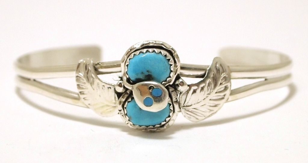 Zuni Turquoise Sterling Silver Snakes Cuff Bracelet - Effie Calavaza
