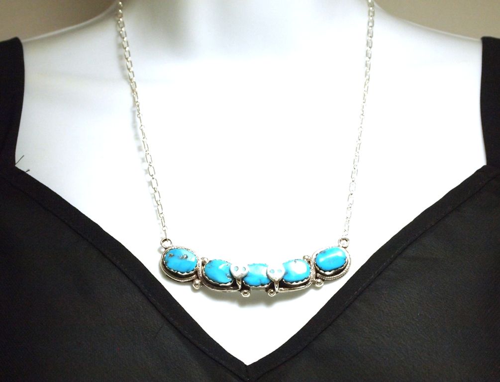 Zuni Turquoise Sterling Silver Snakes Necklace - Effie Calavaza
