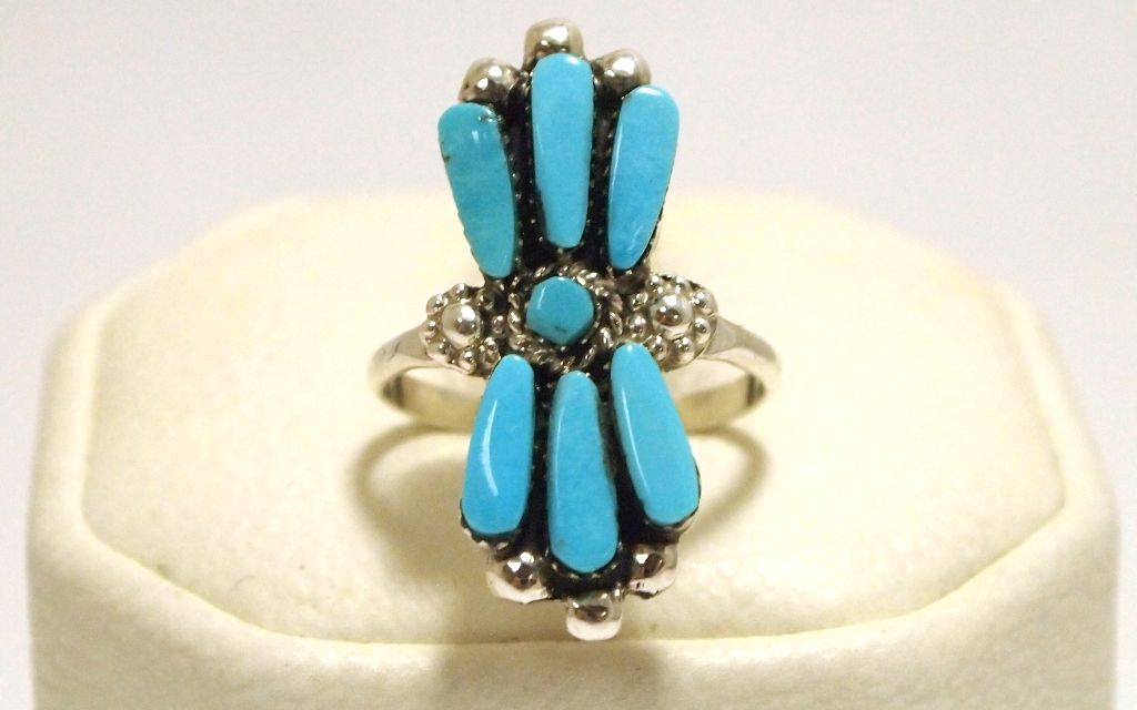 Zuni Turquoise Sterling Silver Women's Ring - M. Eustace