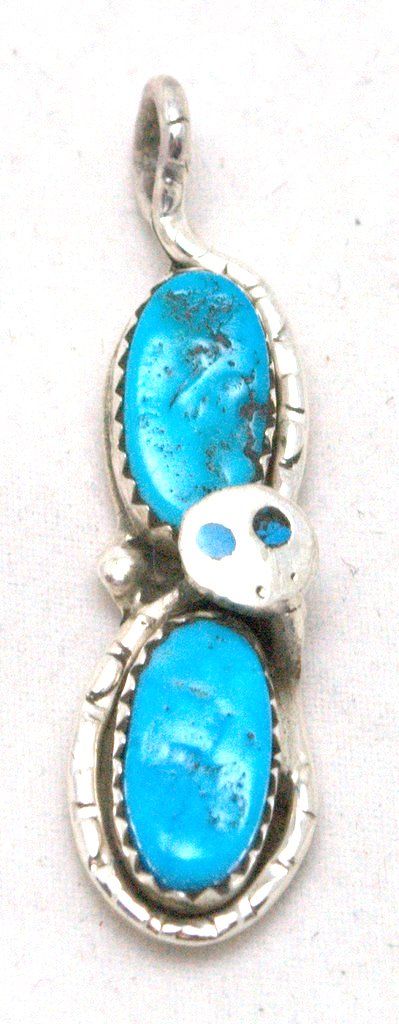 Zuni Turquoise Tall Figure 8 Snake Pendant - Effie Calavaza