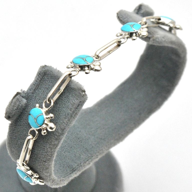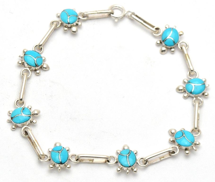 Zuni Turquoise Turtle Link Bracelet - Vernon Waikaniwa