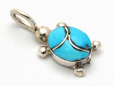 Zuni Turquoise Turtle Pendant - Vernon Waikaniwa