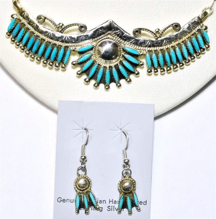 Zuni Turquoise Wide Pendant Necklace & Earrings Set