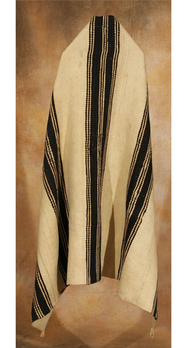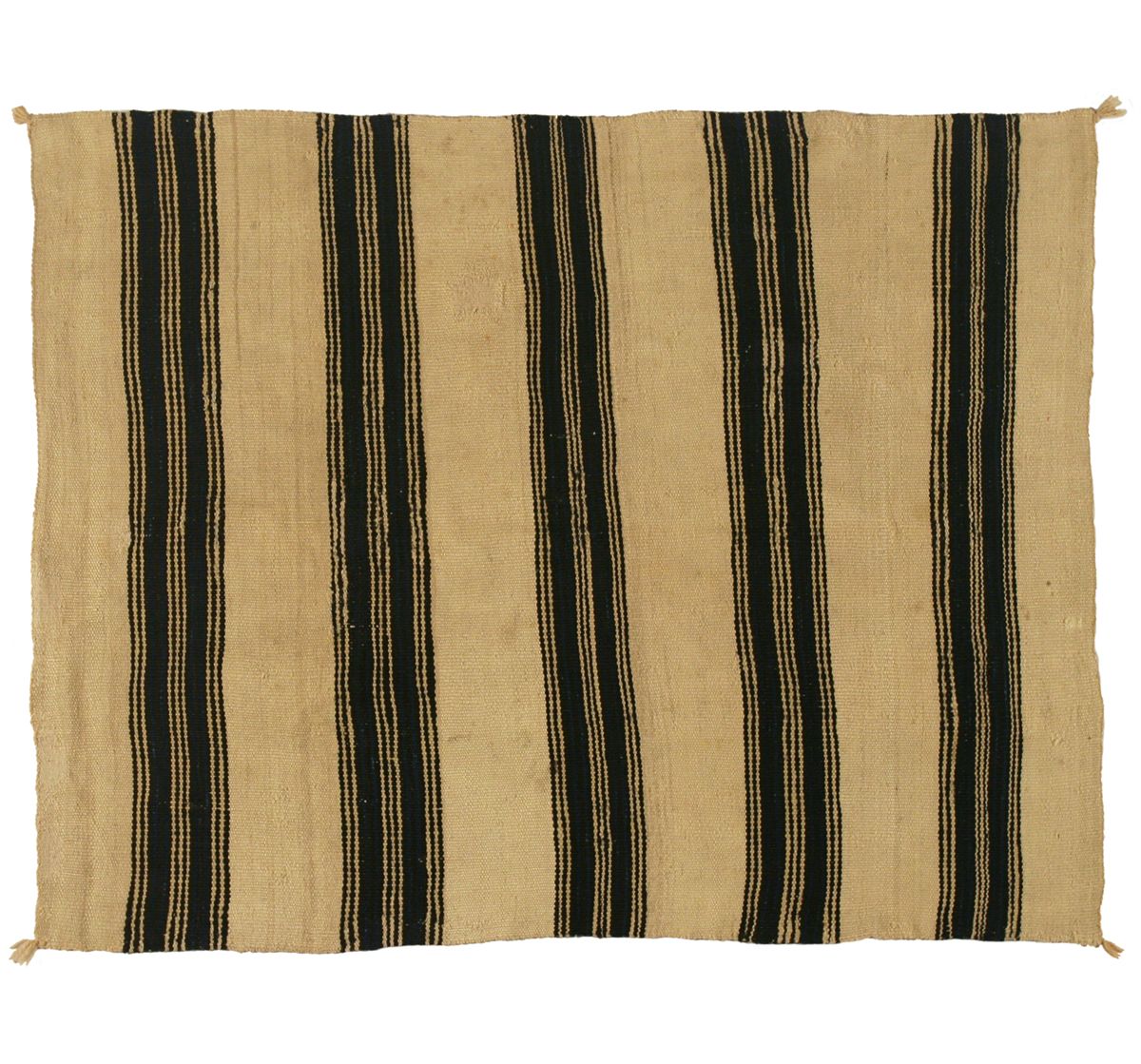 Zuni Wearing Blanket. 4'11" x 4'. Classic striped design on a natural background. 19th century. Provenance and literature: Collection of Dr. Delwin and Karen Bokelman, PA., and pictured in their book Precious Dreams, page 66.