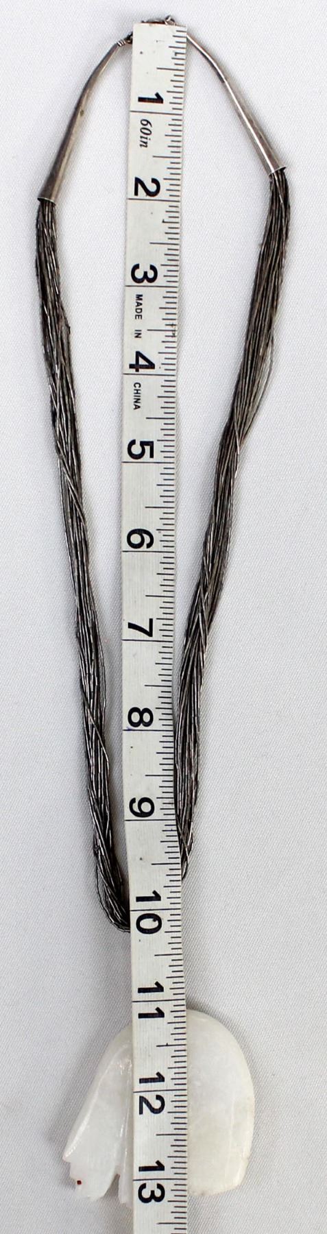 Zuni White Alabaster Bear Fetish Necklace measures 22" end to end pendant is 2.5" x 2.5"