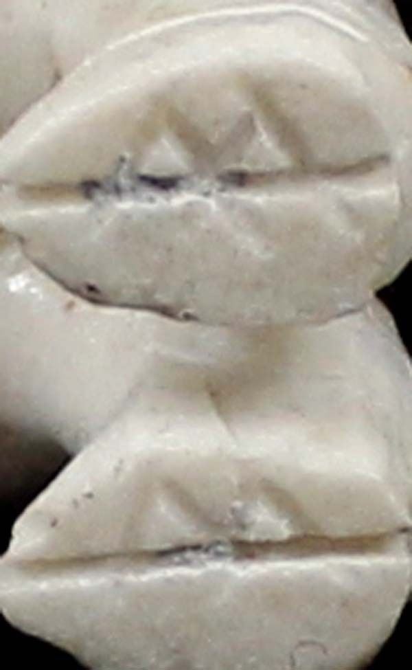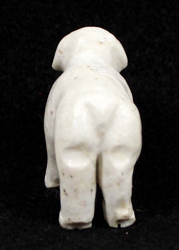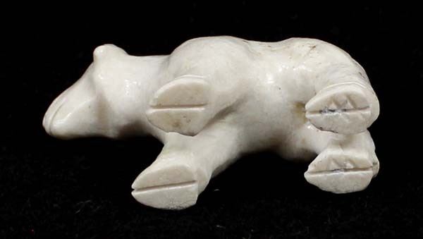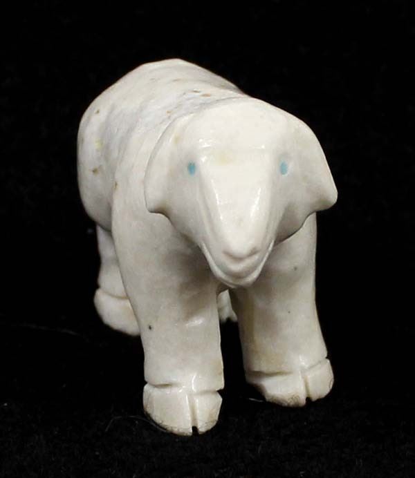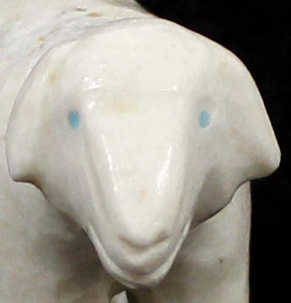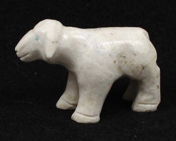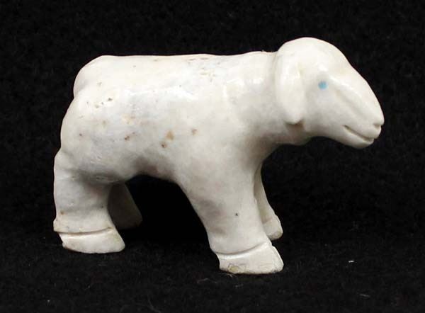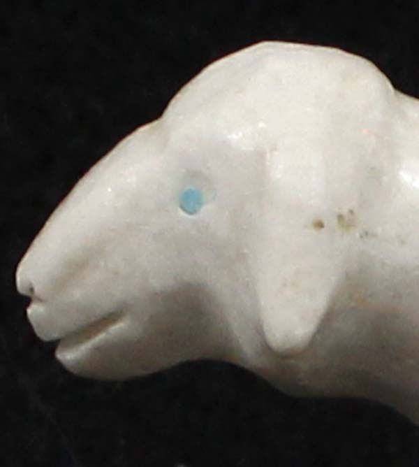 Native American Zuni White Marble Sheep Fetish by Bryston Bowannie, measures 2'' x 1.5'' x .5'', turquoise eyes