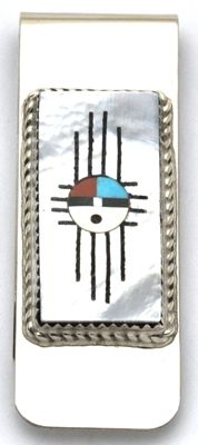 Zuni White Mother of Pearl Sun Design Money Clip - Hustito