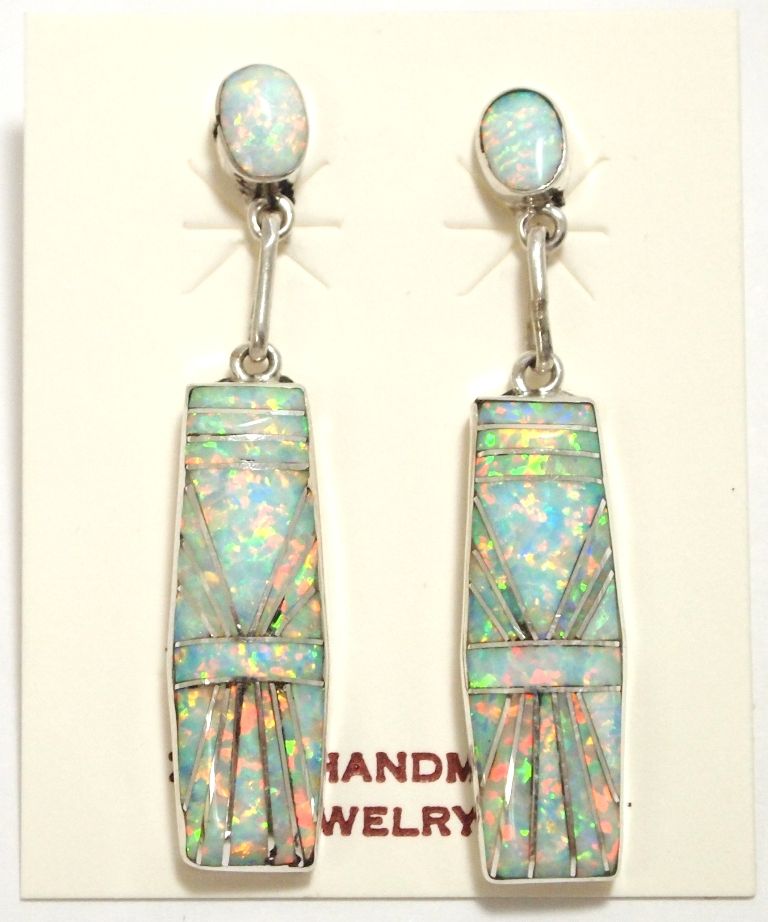 Zuni White/Pink Opal Inlay Sterling Silver Post Earrings - Phyllis Lucio