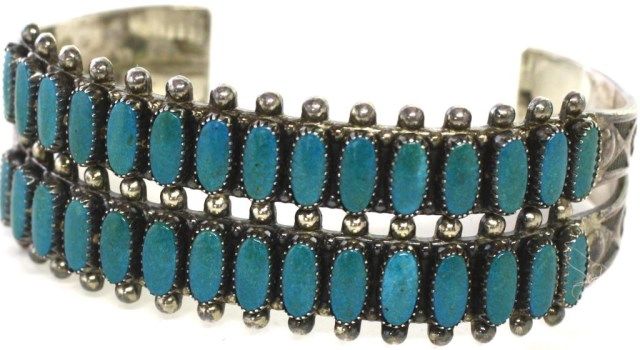 saw tooth set with 28 turquoise stones, stamped sterling on reverse. Est. 150-250