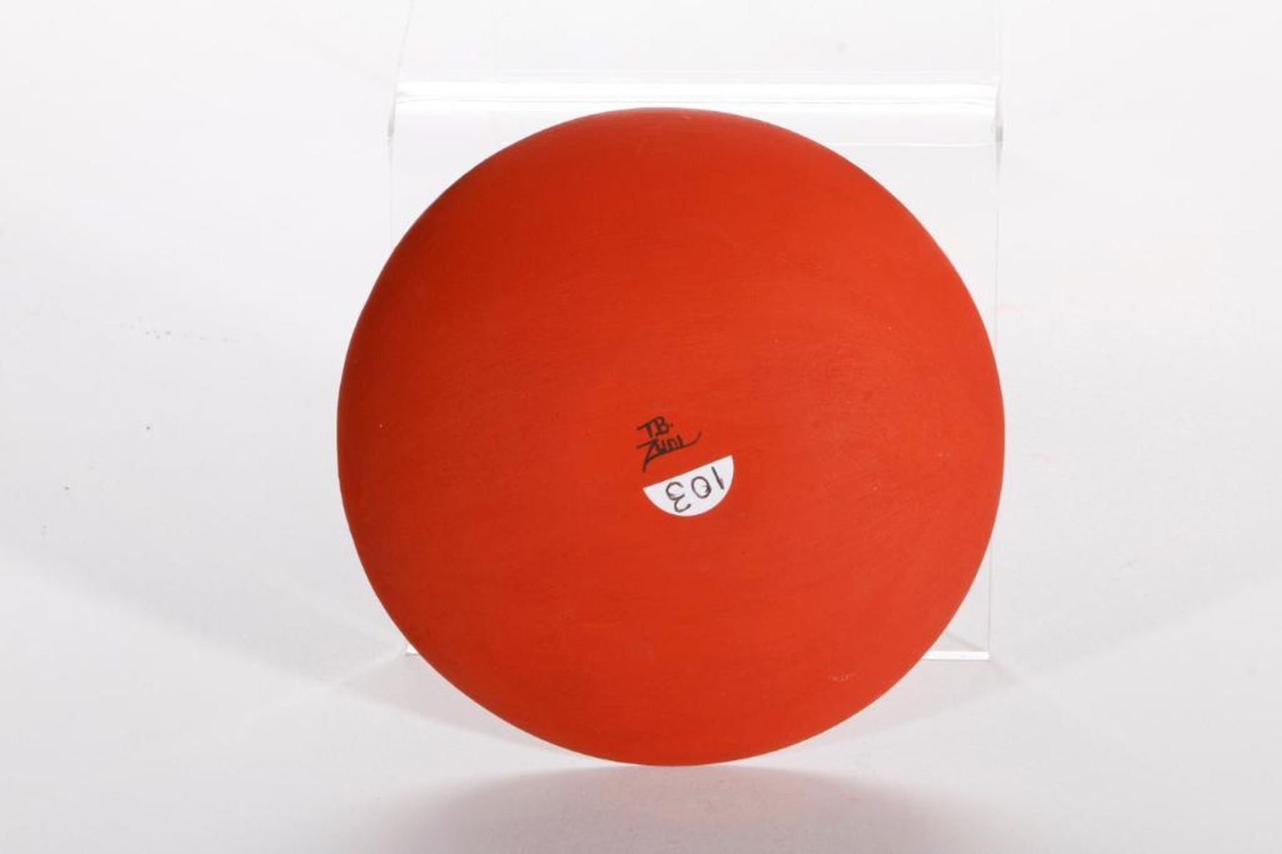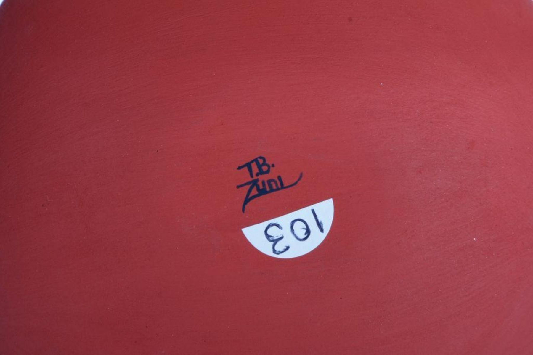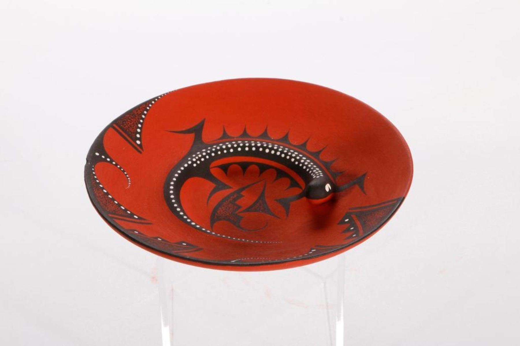 Zuni plate, (5 3/8" x 1€) by Tammy Bellson, red plate w/black lizard
