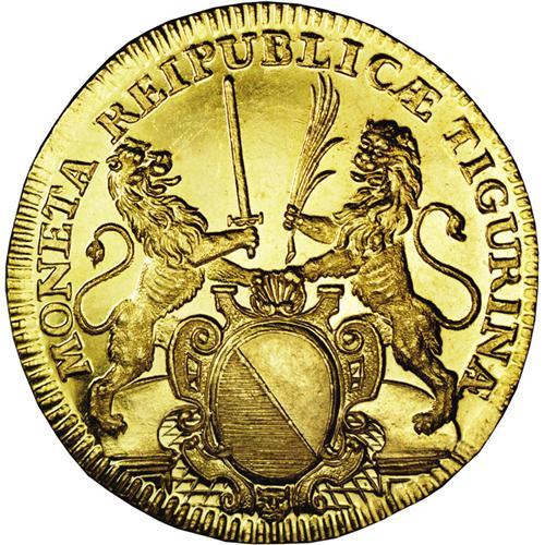 <B>Zurich. Gold 2 Ducats 1720, </B></I>KM141, gem prooflike UNC, a magnificent coin which must be among the finest known. The surfaces are fully reflective and extremely appealing, and the luster is unbroken save for some tiny marks on the reverse. Very rare in this superior quality. The LHS Oct. 2005 auction in Zurich contained an AU example, lot 2729, that sold for 11,500 Swiss Francs, or approximately $9,500.