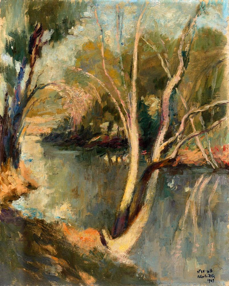 Zvi Adler, Israeli Art, 1909 - 1965, The Yarkon Stream, 1963, Oil on canvas, 50x40cm, Signed and dated., , , , ,