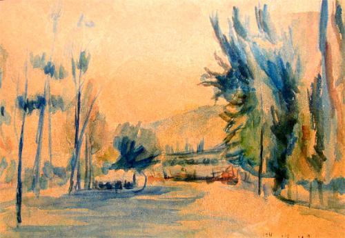Zvi Shor, 1898 - 1979, Landscape, 1941, Watercolor, 22x32 cm, Signed and dated., , , , ,