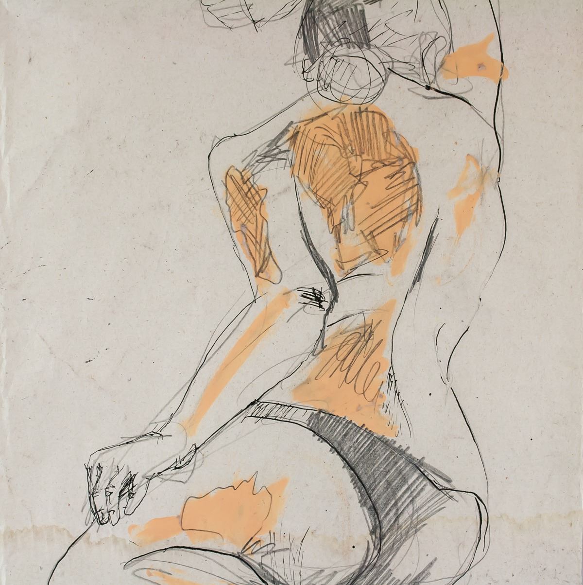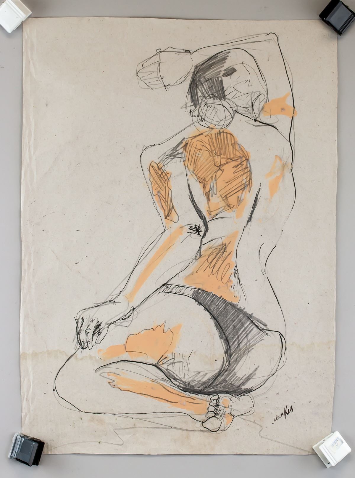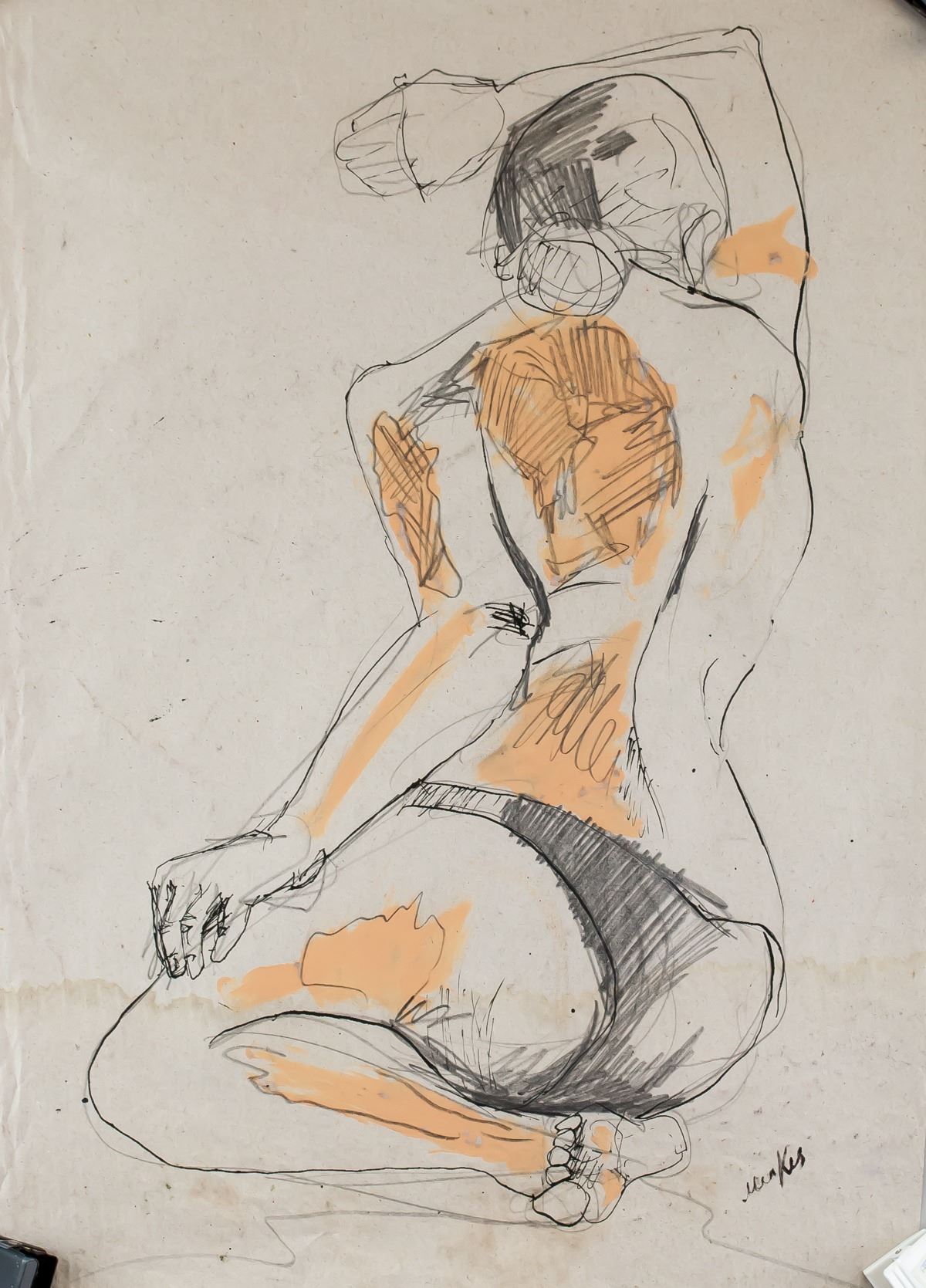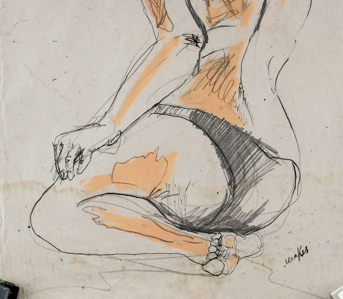 Mixed media on paper. Featuring a study of a nude figure. Signed Menkes on the lower right corner. Attributed to Zygmunt Menkes (1896-1986). 61 x 43 cm (24.0 x 16.9 inches). PROVENANCE: Southern Ontario estate