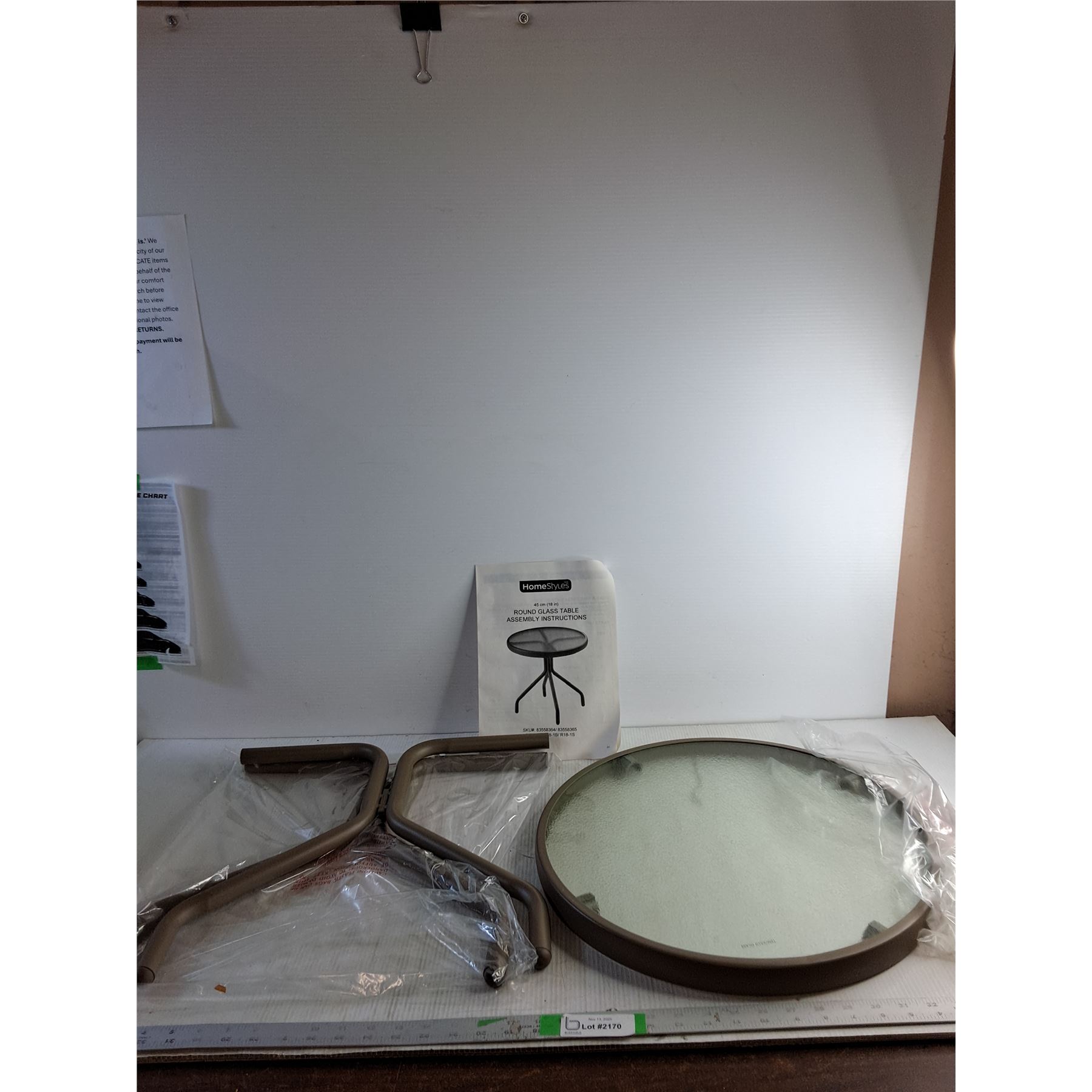 Outdoor Round End Table/ Steel Legs/ Glass Top (18")(NIB) Assembly Required