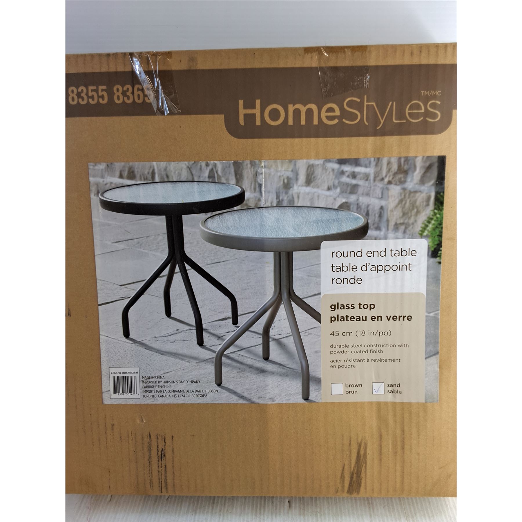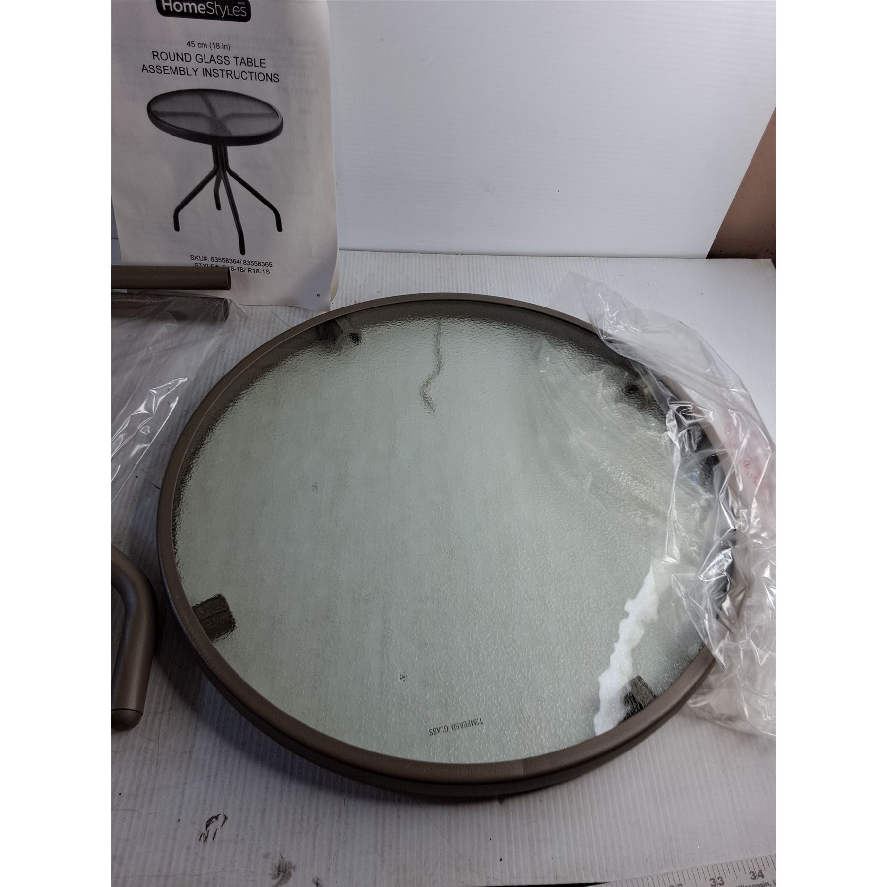 Outdoor Round End Table/ Steel Legs/ Glass Top (18 )(NIB) Assembly Required