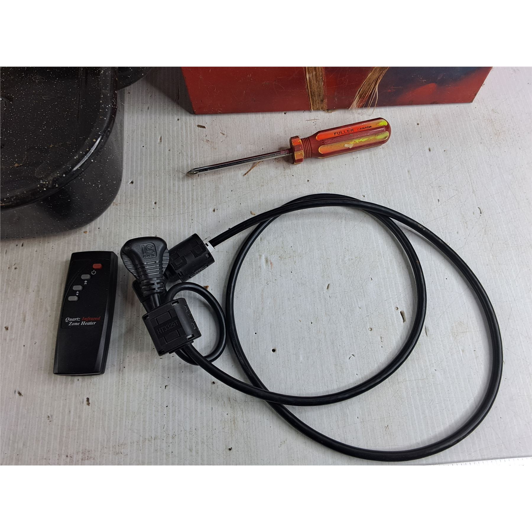 Baking Dish 18" x 14" x 4", Metal Tool Box 11" x 6" x 7", Power Cord, Screwdriver, Remote