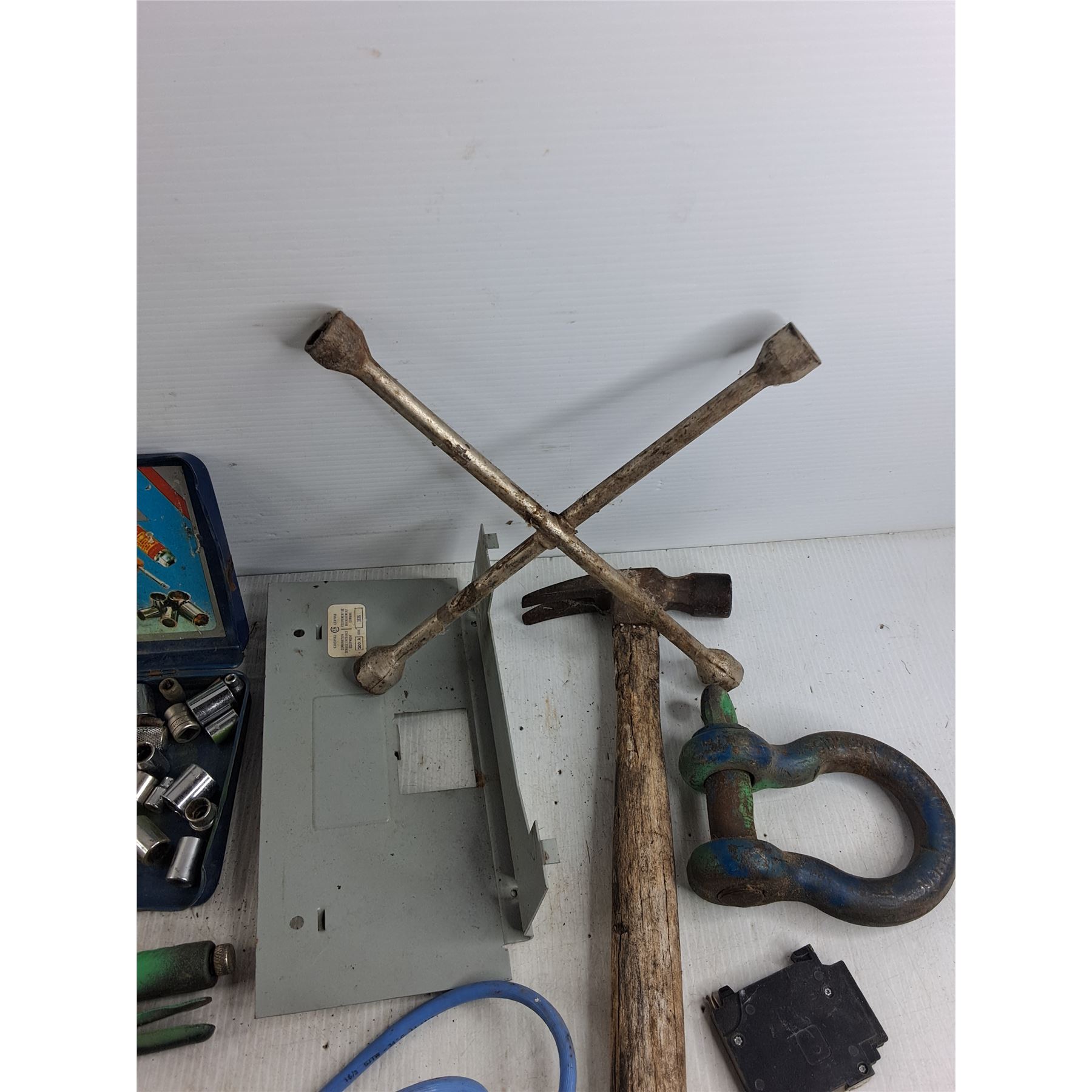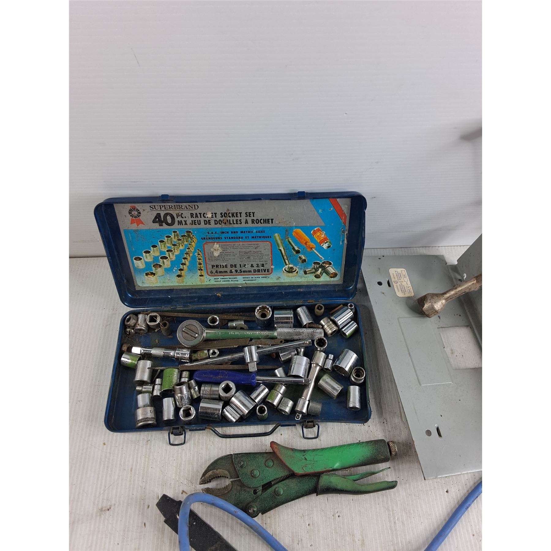 Ratchet Socket Set, Vise Grips, Lug Wrenches, Hammer, 6' Extension Cord, Misc