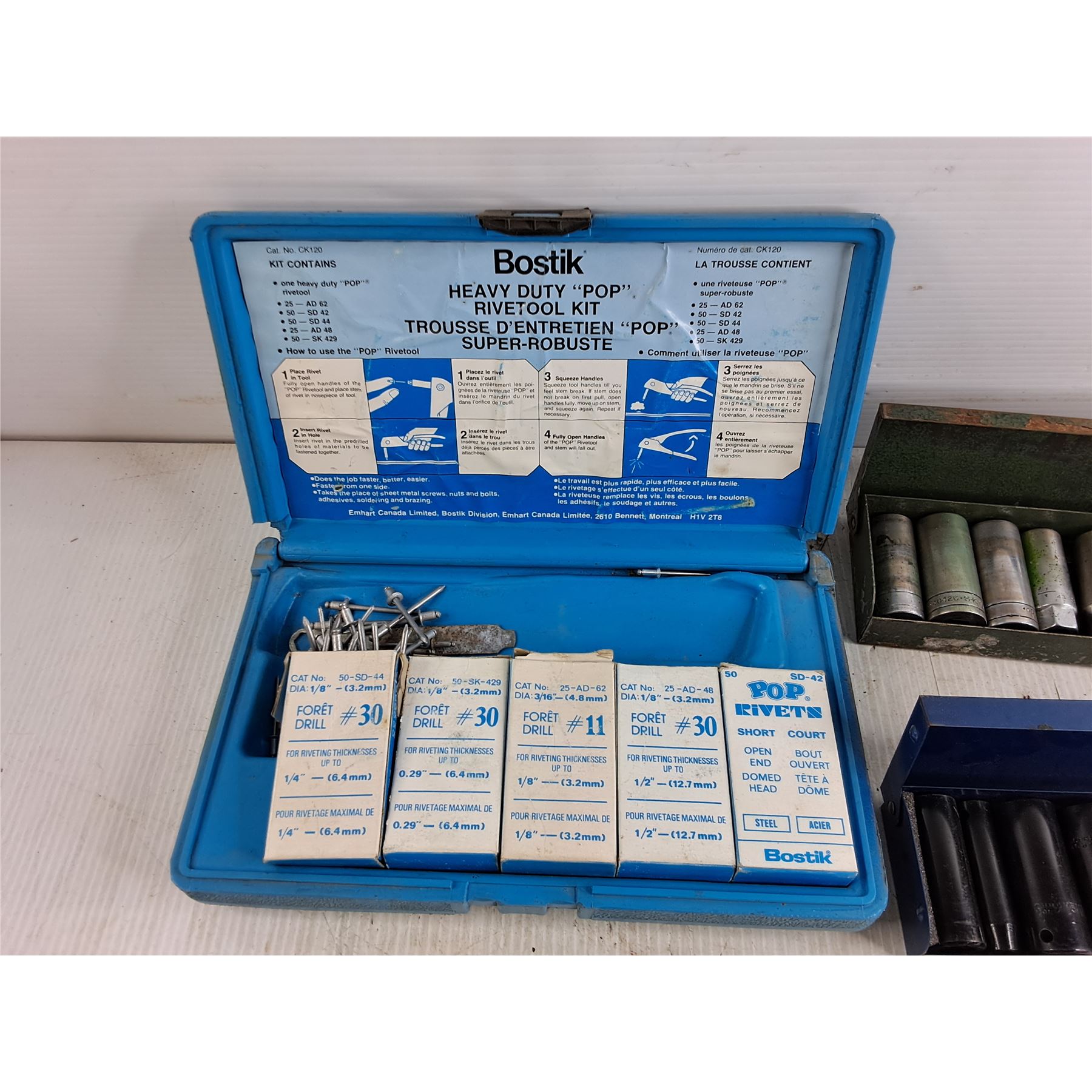 Various Pop Rivets, Lug Sockets, Ratchet & Sockets Set