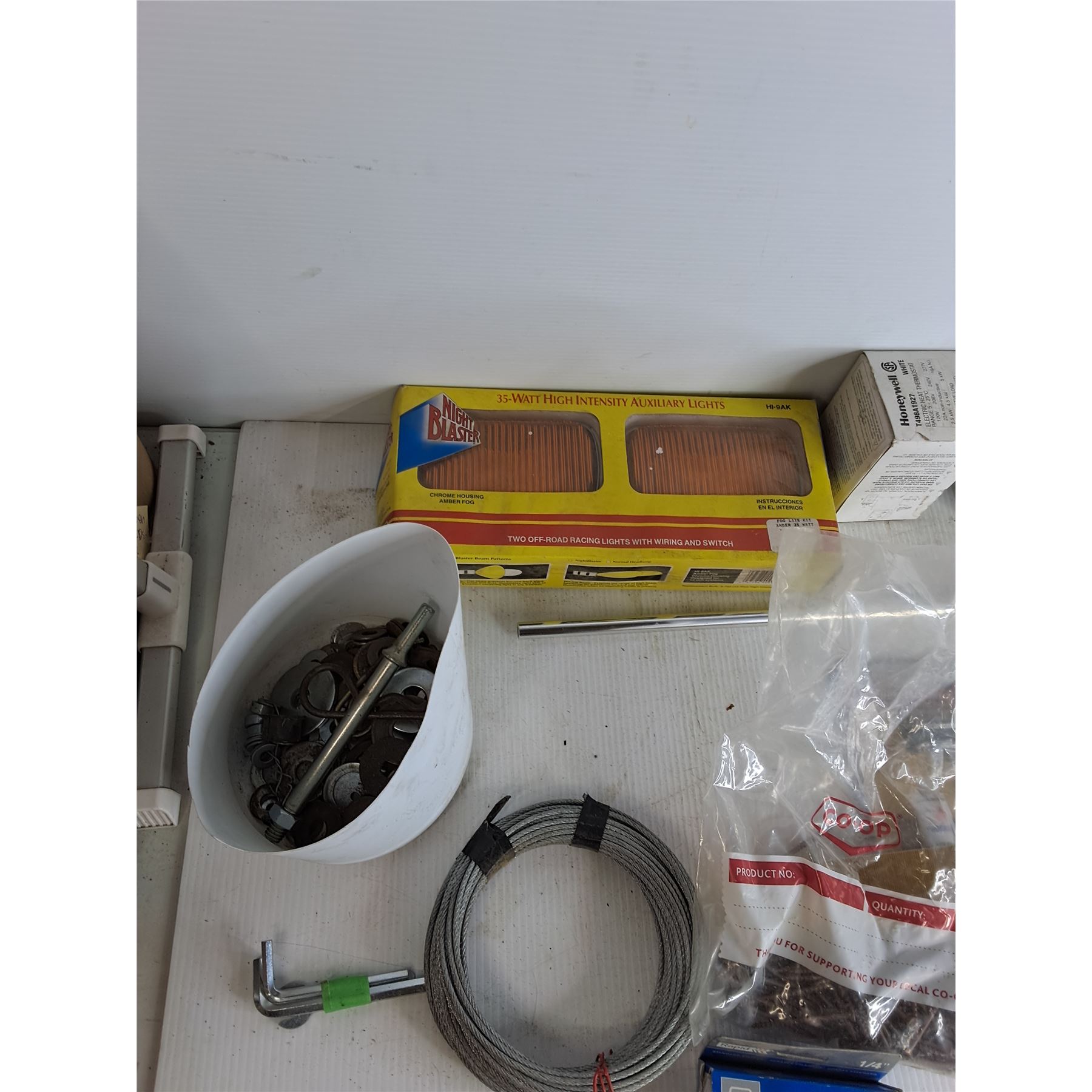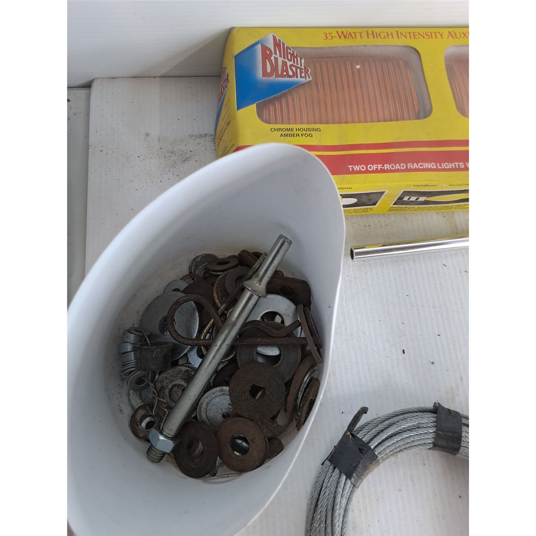 Allen Key Set,  Metal Wire, Washer, Auxillary Lights, 2.5" Brown Deck Screws, Bunjee Cords, Misc