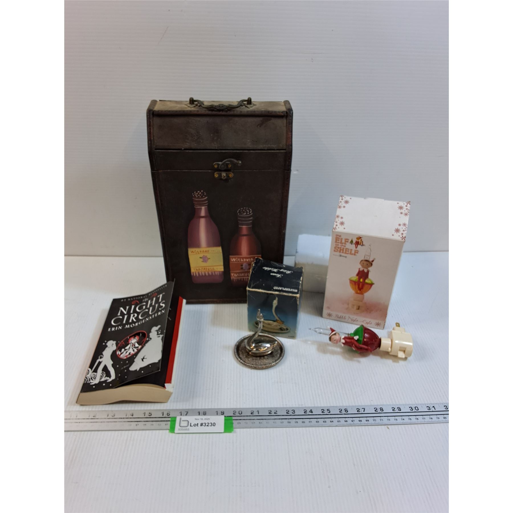 Liqueur Box, Book: Night Circus, Swan Ring Holder, Elf Nightlight Bubbler - Powers On