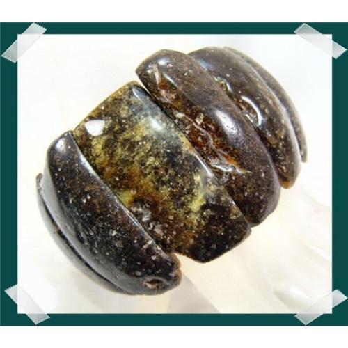 very large amber bracelet securely fastened in the traditional method on two strong elastic cords. With an inside measurement of 8 inches it would be best suited for a wrist of 7.5" or larger in my opinion. The largest amber measures 50x23x8mm and yes that is 2" in height with a gram weight of 70.