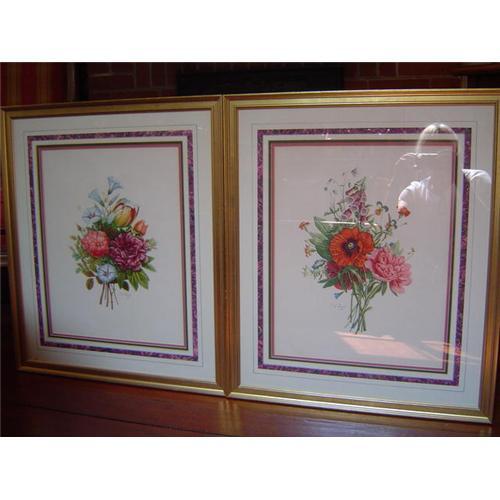 a beautifull pair of two botanical perfectly framed . circa 1940 .