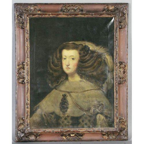 after DIEGO VELAZQUEZ 27"x21" oil on canvas 19th century CONDITION REPORT: scattered moderate inpainting, sloppy over varnish.