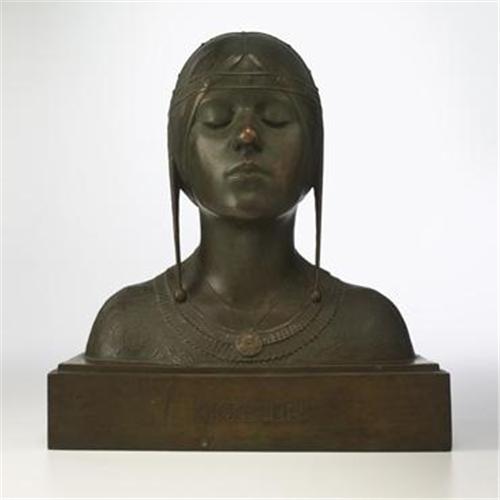 after Isamu Noguchi 1904-1988<BR>Giorgina<BR>1924<BR>cast bronze<BR>13 w x 6.75 d x 14 h inches<BR>Cast signature and date to side 'Isamu 1924' with cast title 'Giorgina' and impressed foundry marks to side 'Roman Bronze Works N-Y'<BR>Noguchis early figurative sculptures were powerful works that set direct precedents for his later biomorphic idiom. Learning portraiture in the studio of Gutzon Borglum in the early 1920s, Noguchi mastered the nuances of the human form. Following this, he went on to work under Italian artist Onorio Ruotolo in New York where he further perfected his Greco-roman styled sculptures. <BR>Though the plaster cast of <i>Giorgina</i> is clearly illustrated in the catalogue raisonne, the history of the subsequent bronze works is lost. Many of Noguchis early works were cast at New Yorks Roman Bronze Works, a foundry that suffered a damaging fire in 1927 that destroyed all paperwork dating from 1920 through 1927. As a result, official documentation and records from this period are nonextant. <i>Giorgina</i> is one of several works that was most likely cast during this time.