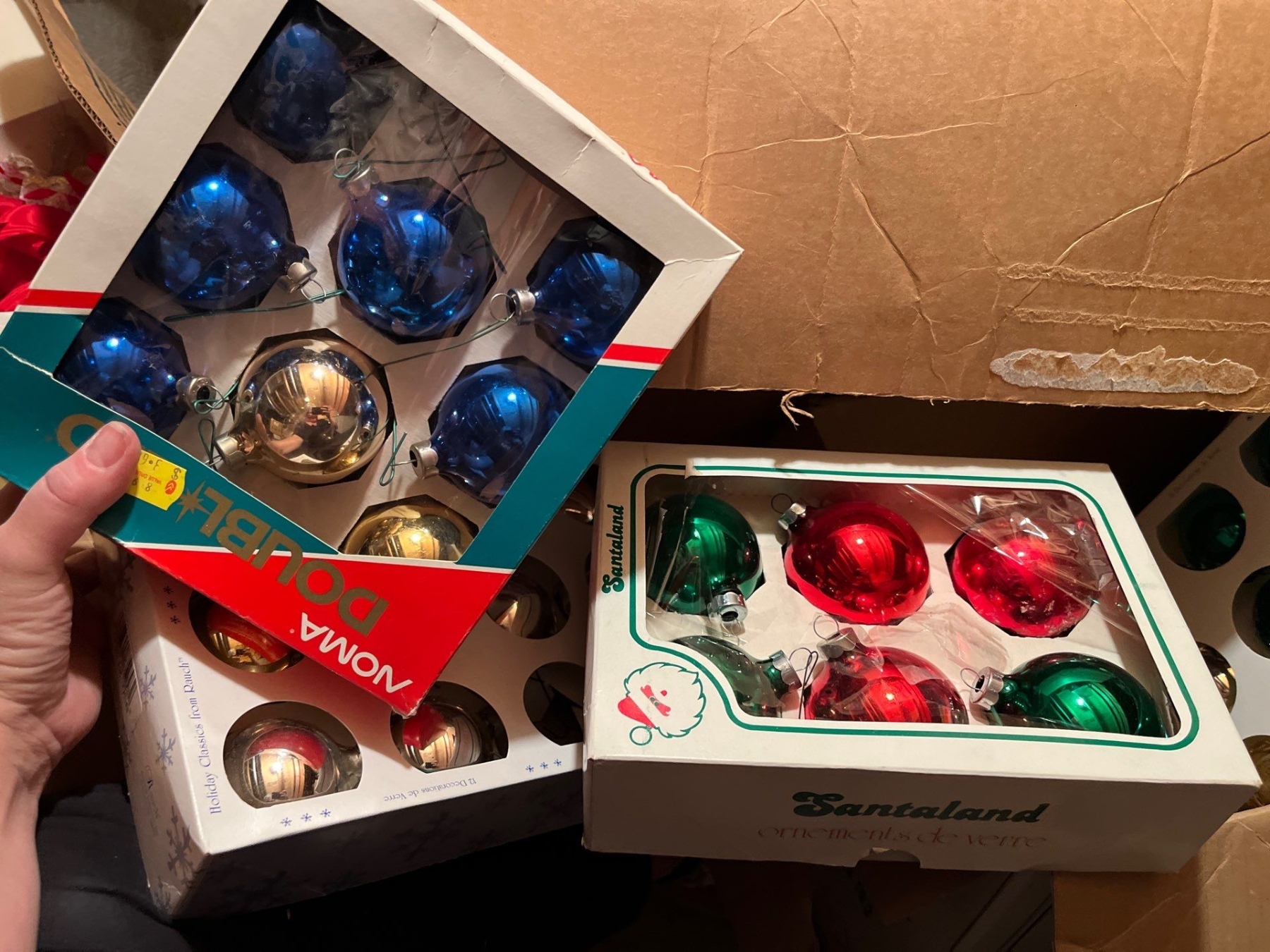 amazing collection of glass Christmas ornaments, Norma double glow fine quality, decorations, vintag