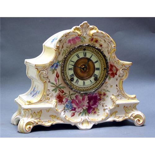 A lovely Ansonia 'La Nord' Royal Bonn Porcelain china clock in excellent condition.The clock is white porcelain with light yellow accent colour with floral decoration. The back photos show the Royal Bonn mark.