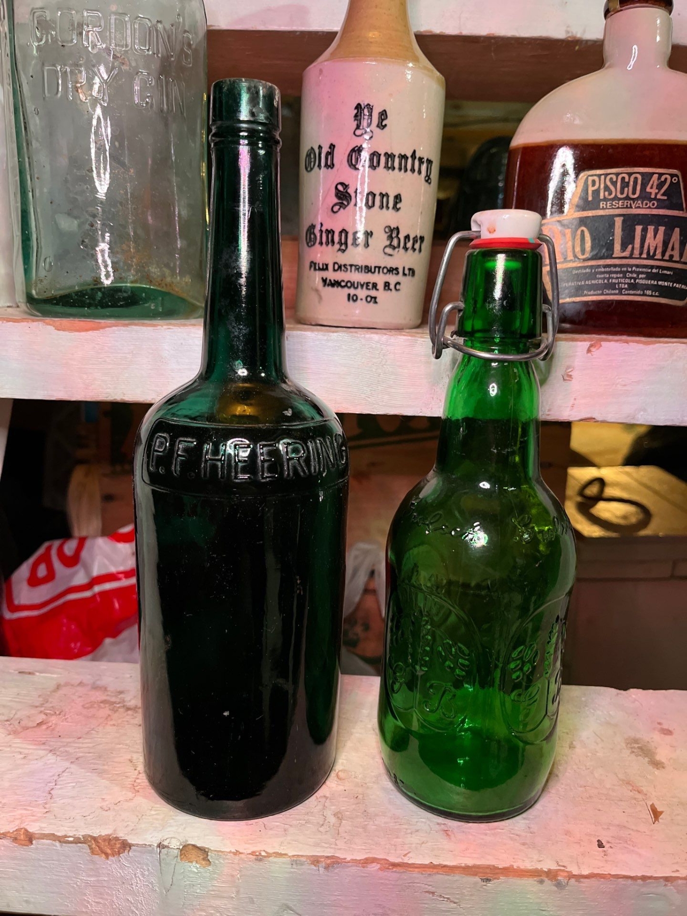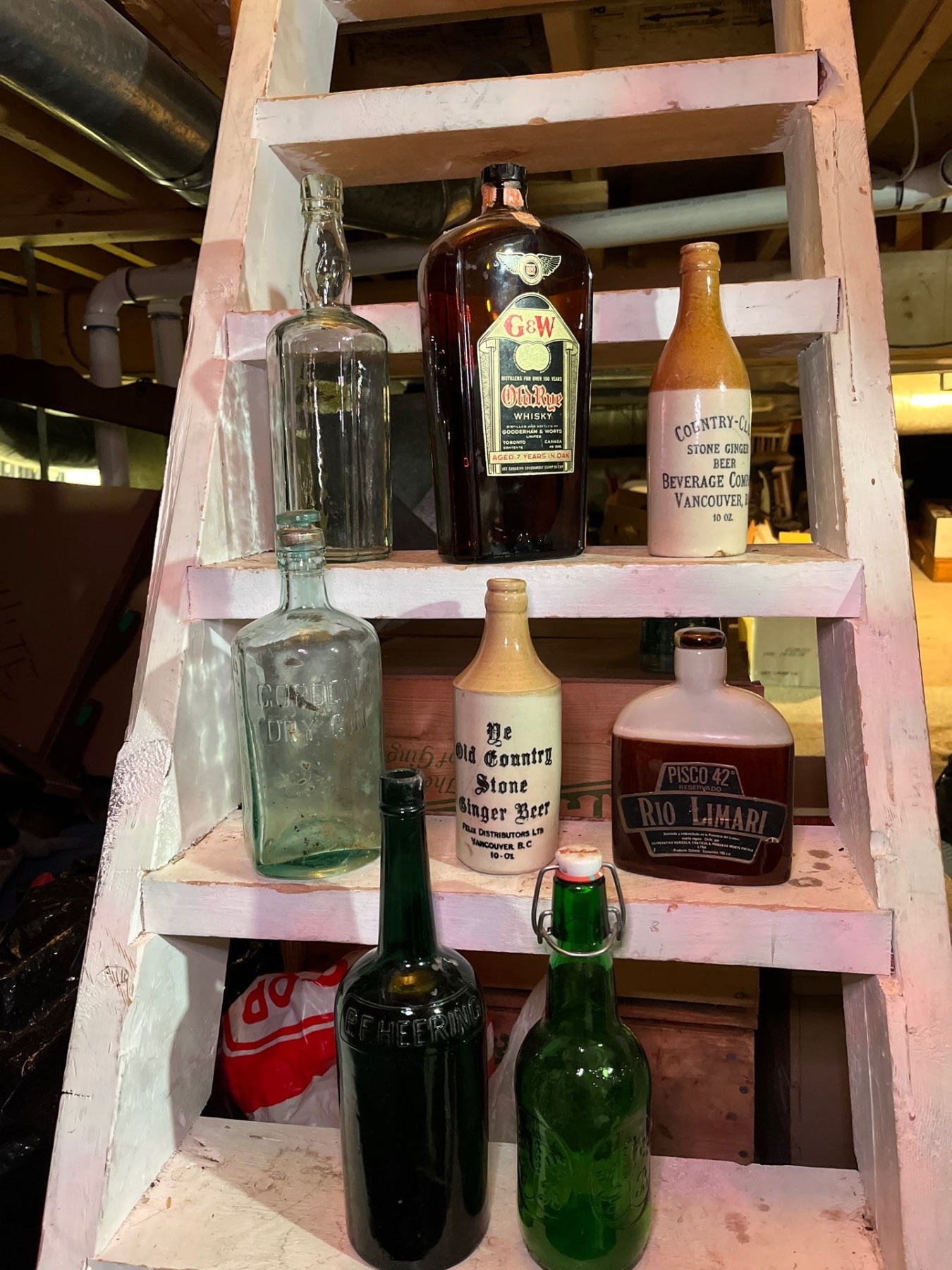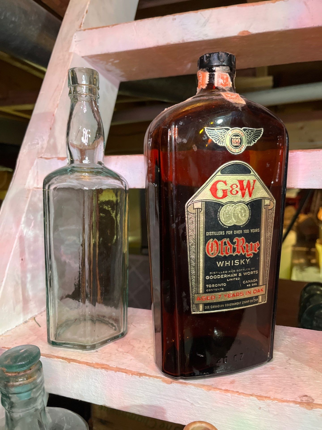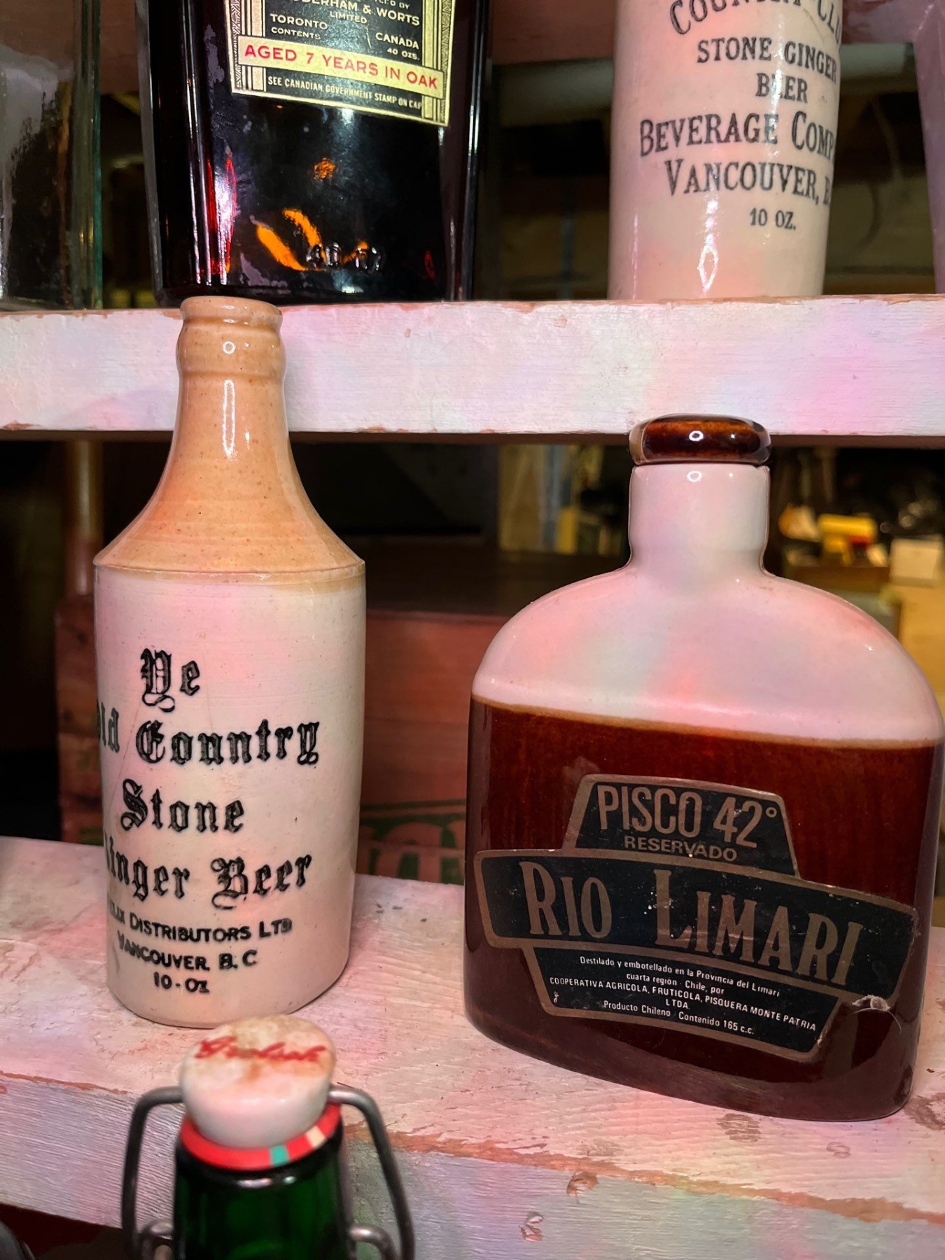 antique bottle collection 8 in total whiskey, bottles, ginger beer bottles scotch bottles all very cool and collectible. Don’t miss out on this lot.