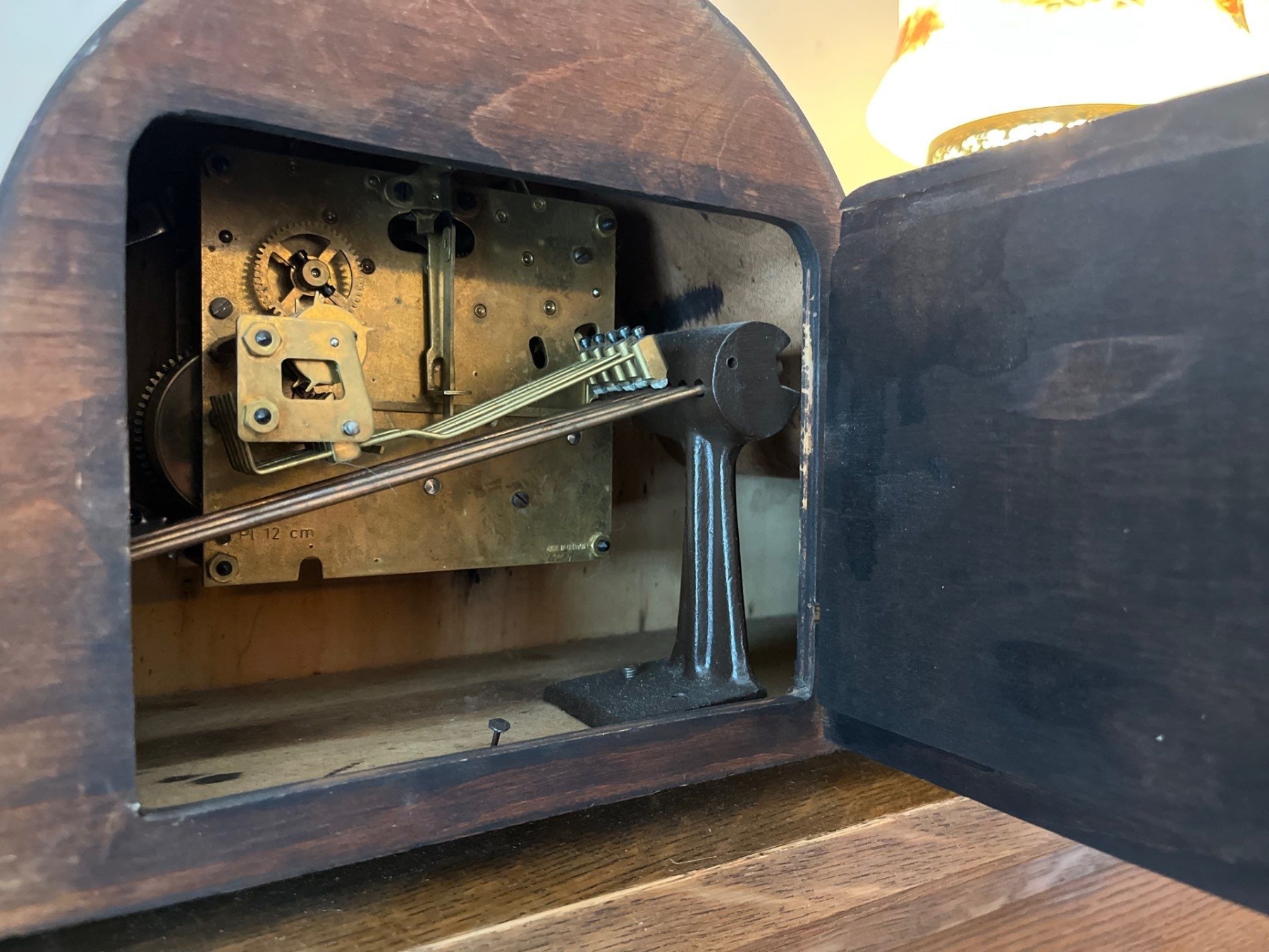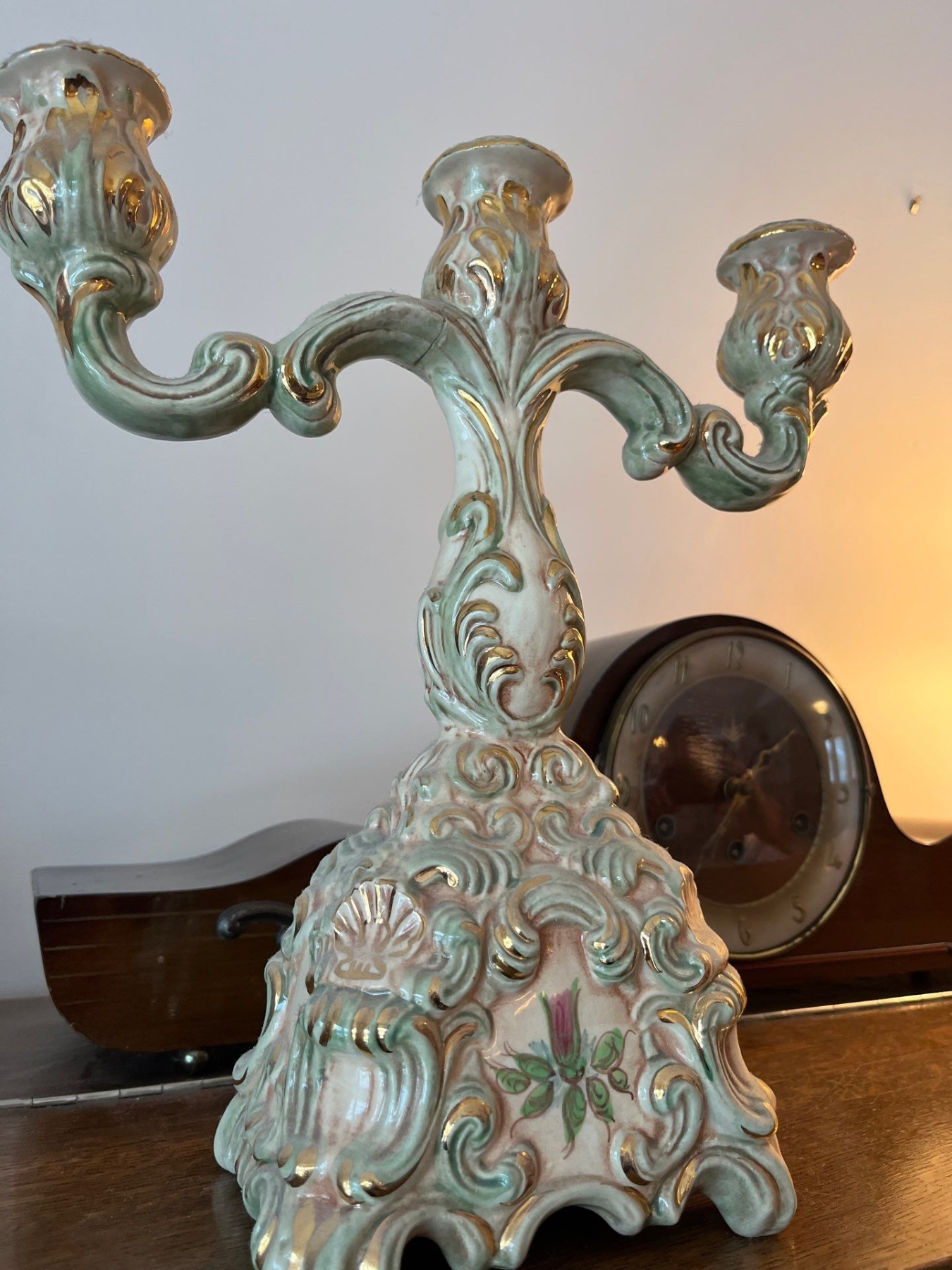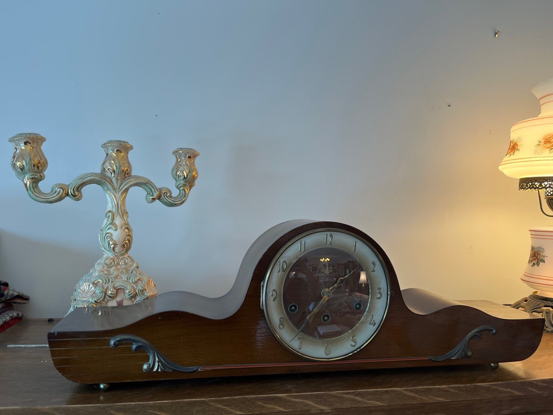 antique desk clock in working condition with ornate three candle holder 14 inches in height