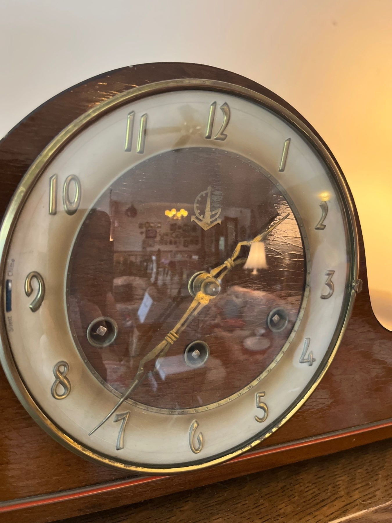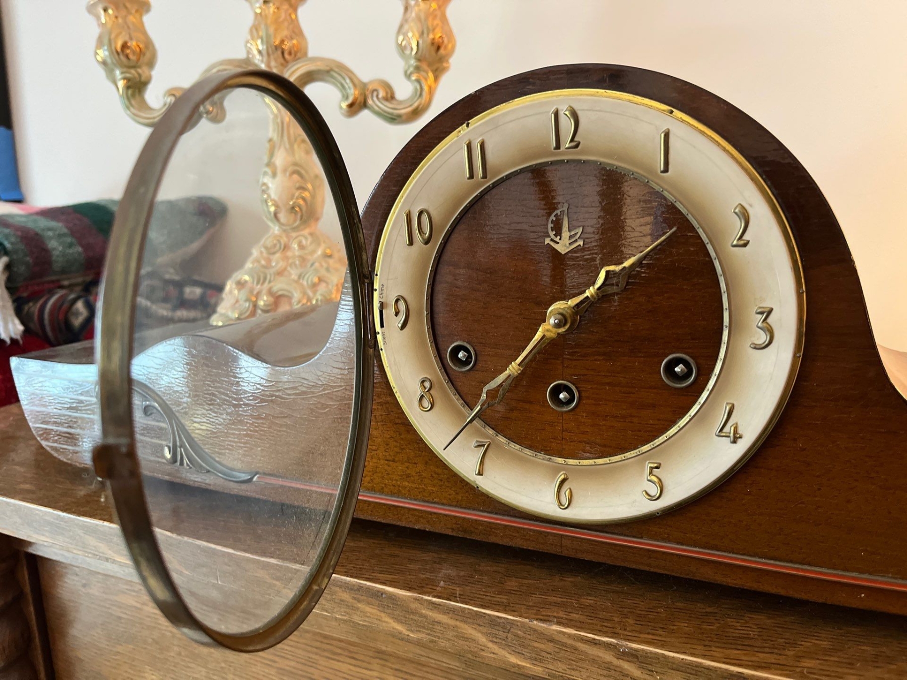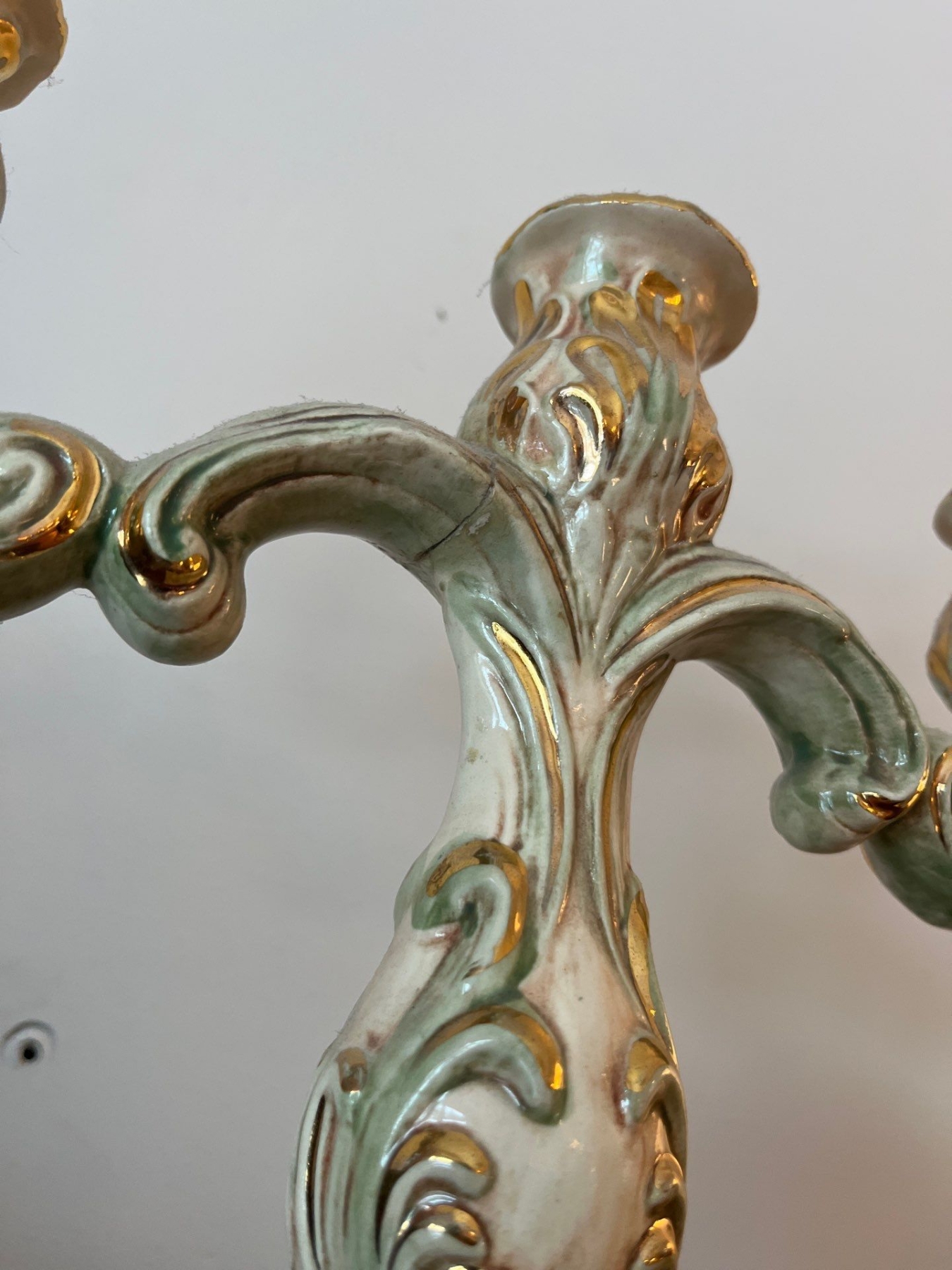antique desk clock in working condition with ornate three candle holder 14 inches in height