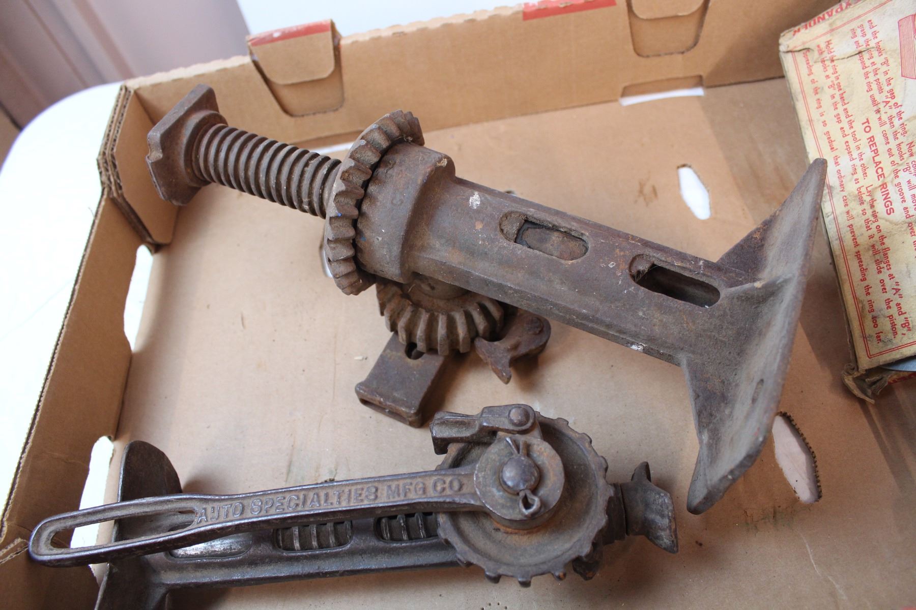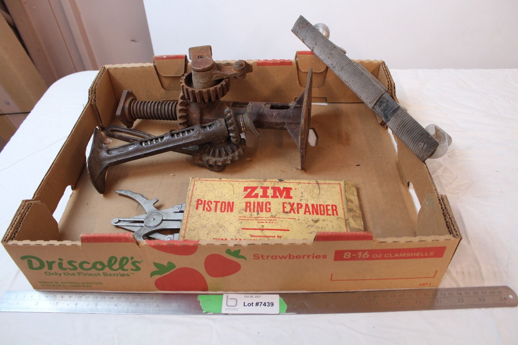 antique gear jacks, Nicholson File rasp, piston ring expander