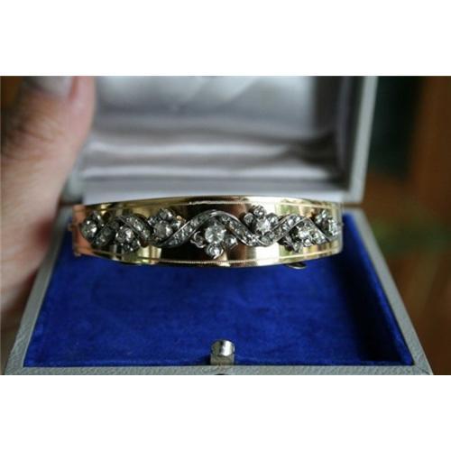 exellent auality gold with rose diamonds bangle in silver setting, year 1900 no damages or restorations
