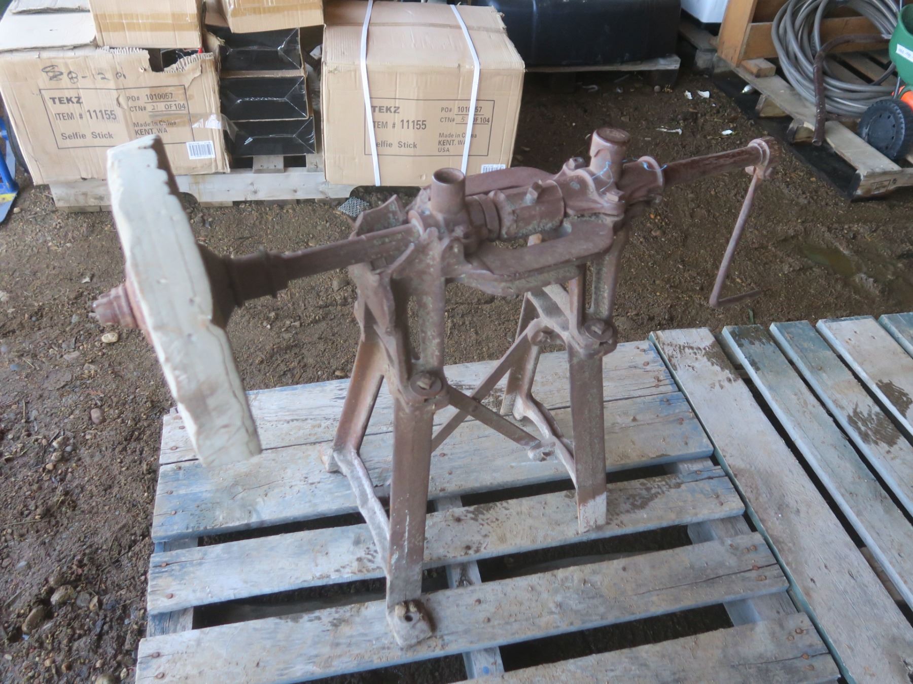 antique grindstone with cast frame