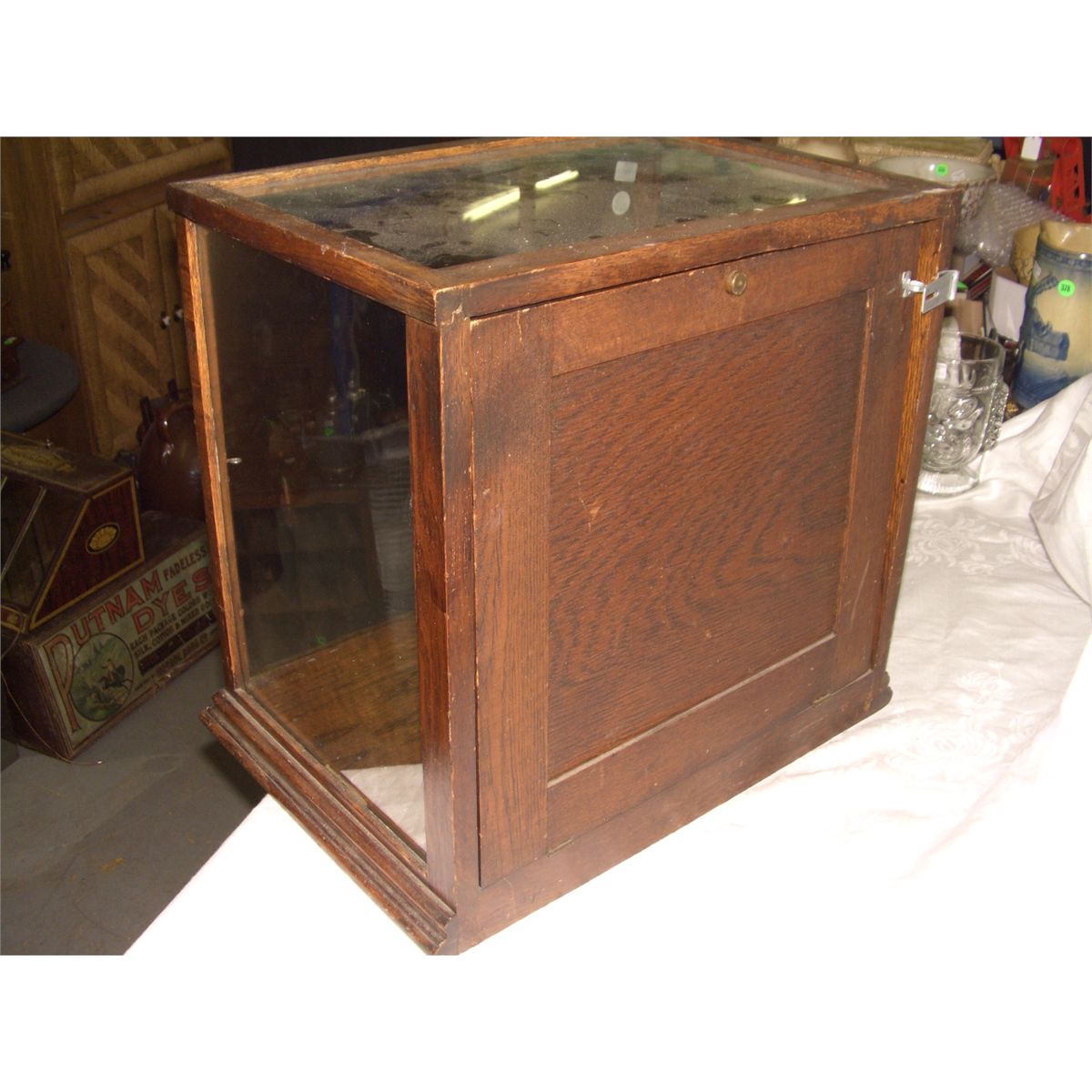 antique oak gen Store Display Cabinet / showcase, counter top