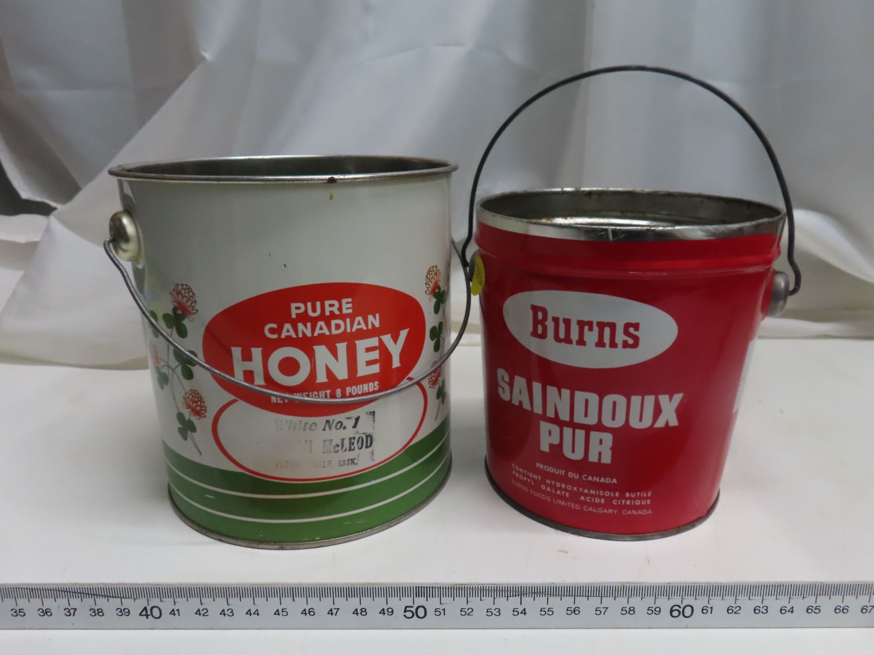 antique tin honey and lard pails