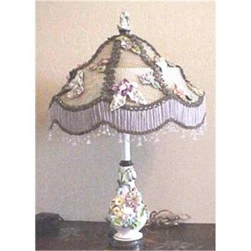 <tr><td>Title:applied floral lamp base with custom shade</td></tr>