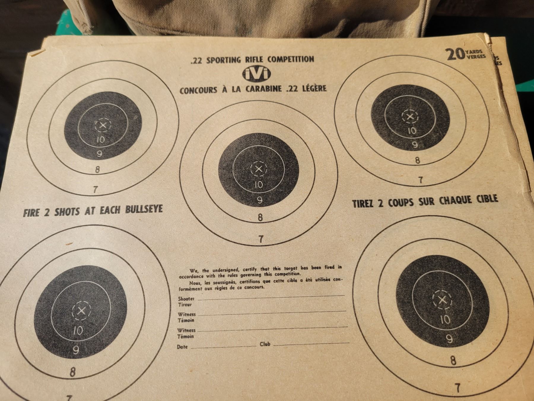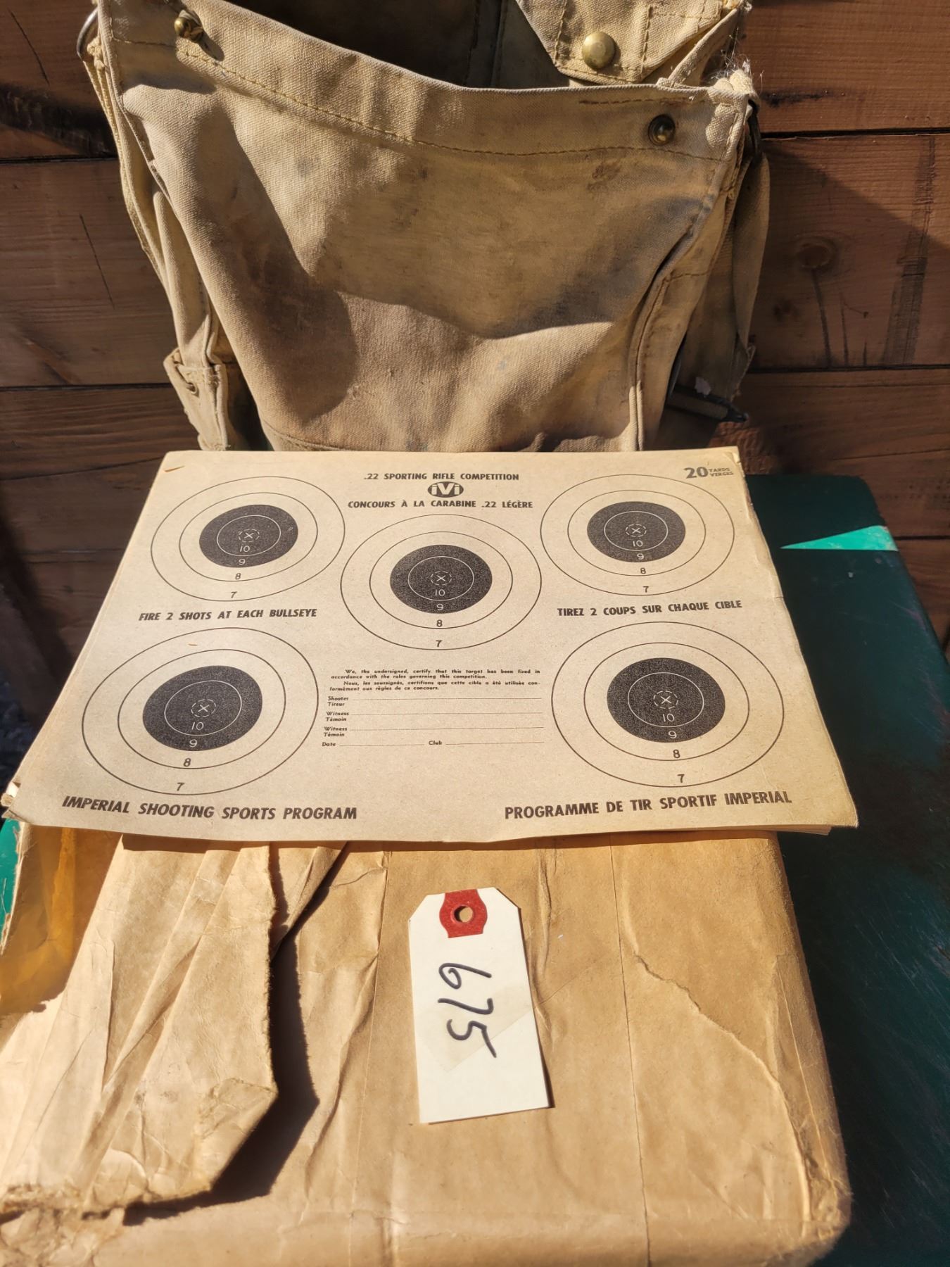 approx. 100 vintage sporting rifle competition target sheets & vintage canvas ammo bag