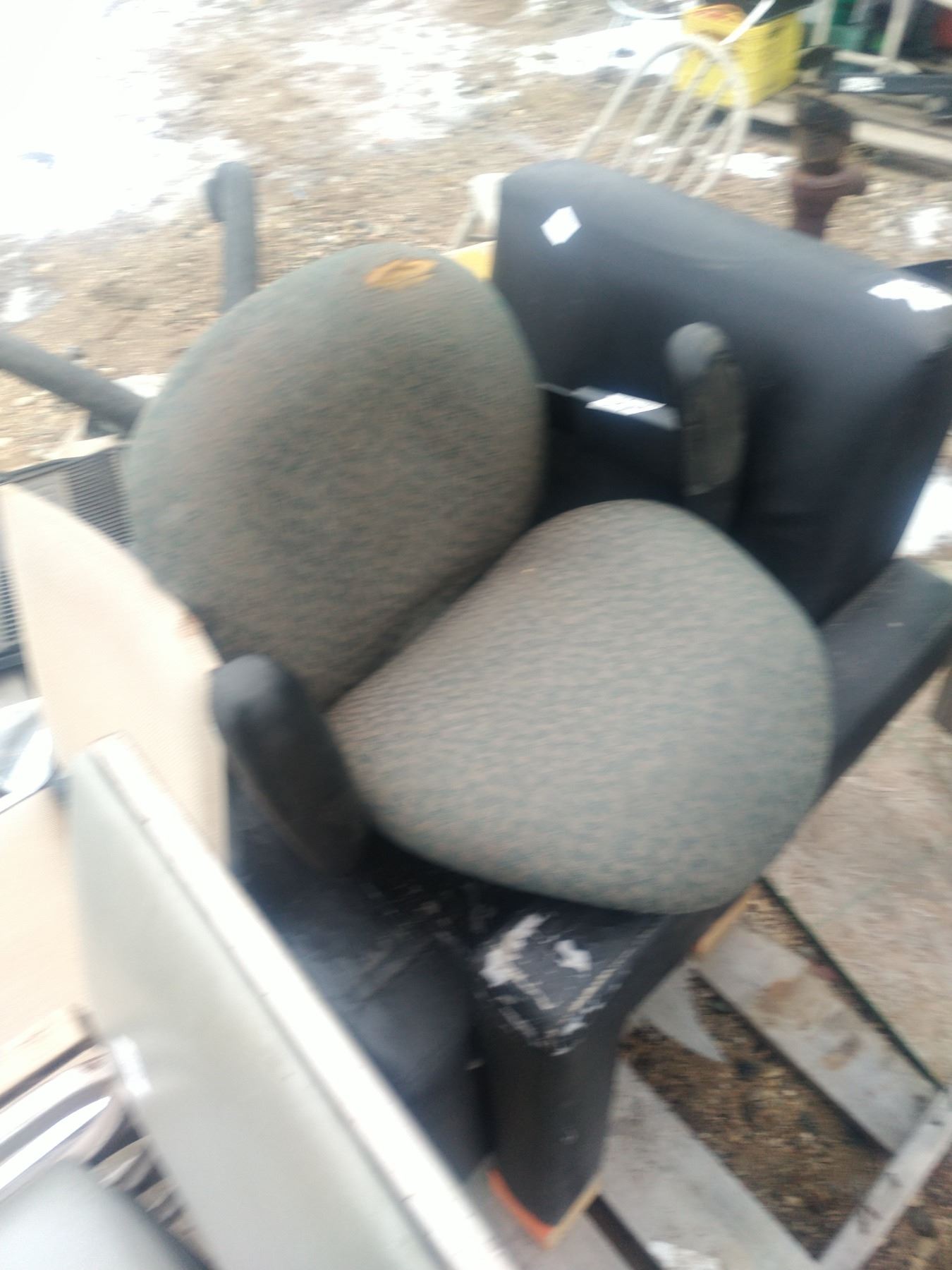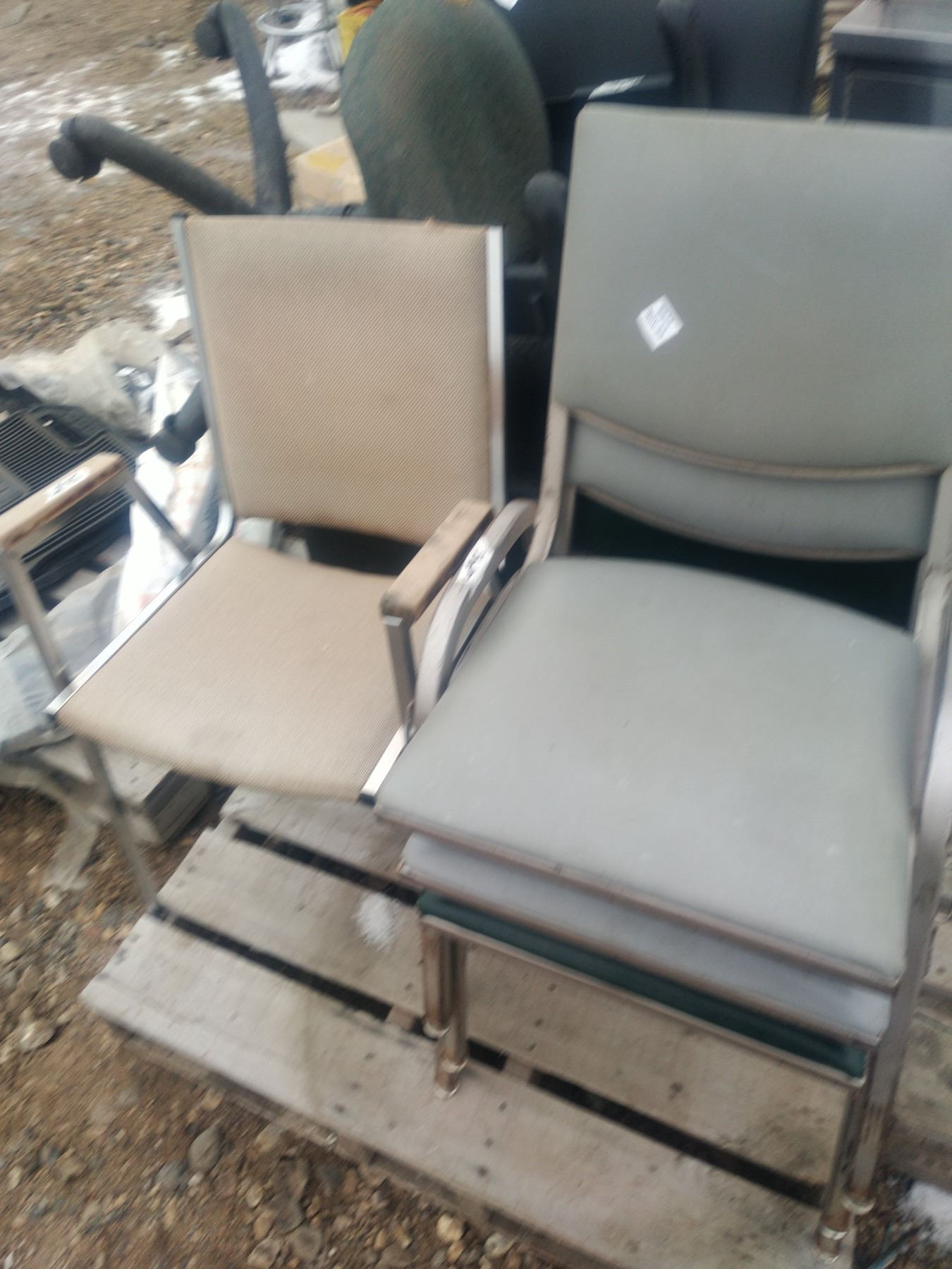 arm chair, office chair, 4 stacking chairs.