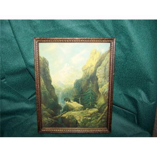 THE FRAME AND PRINT ARE BOTH OLD THEY WERE IN A BOX OF PRINTS IN MONTROSE COLORADO, ALL STUFF FROM 1940'S THE NOTCHED MT IN THE PHOTO IS MT SNEFFLES CO (in an old frame) IF YOU WANT TO SEE A PRINT LIKE THIS IN A BOOK BY PAT Gibson's . R. A. Fox print, listed in Pat Gibson's book. OF COURSE HIS IS FRAMED DIFFERENT