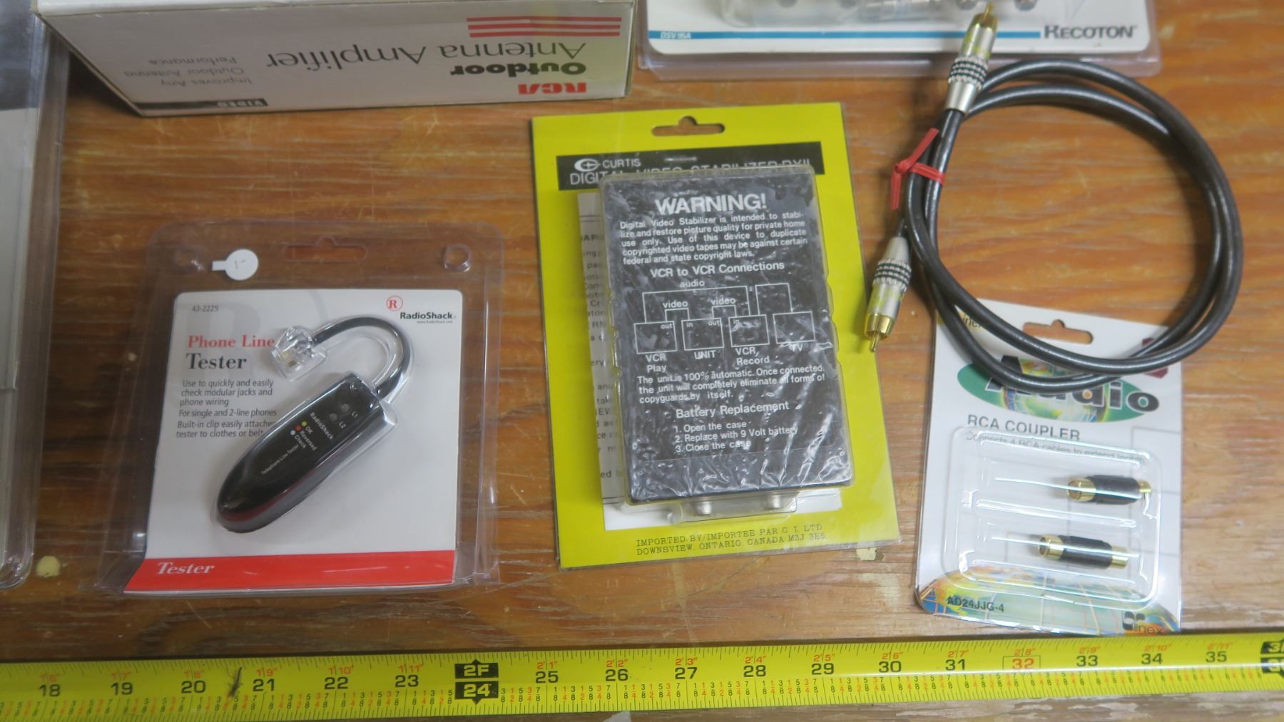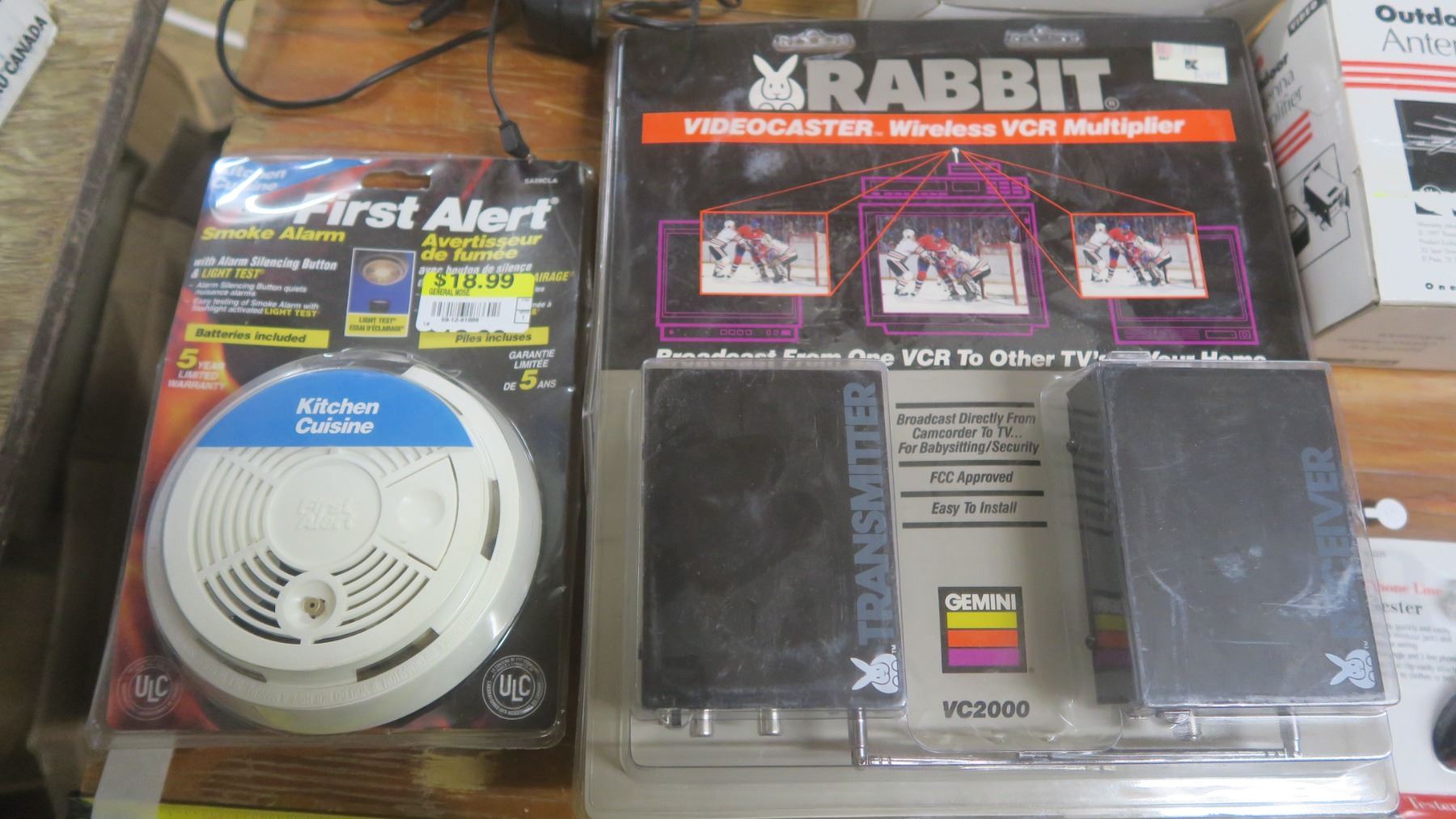 assorted electronics - video caster, smoke alarm, antenna amplifier, etc.
